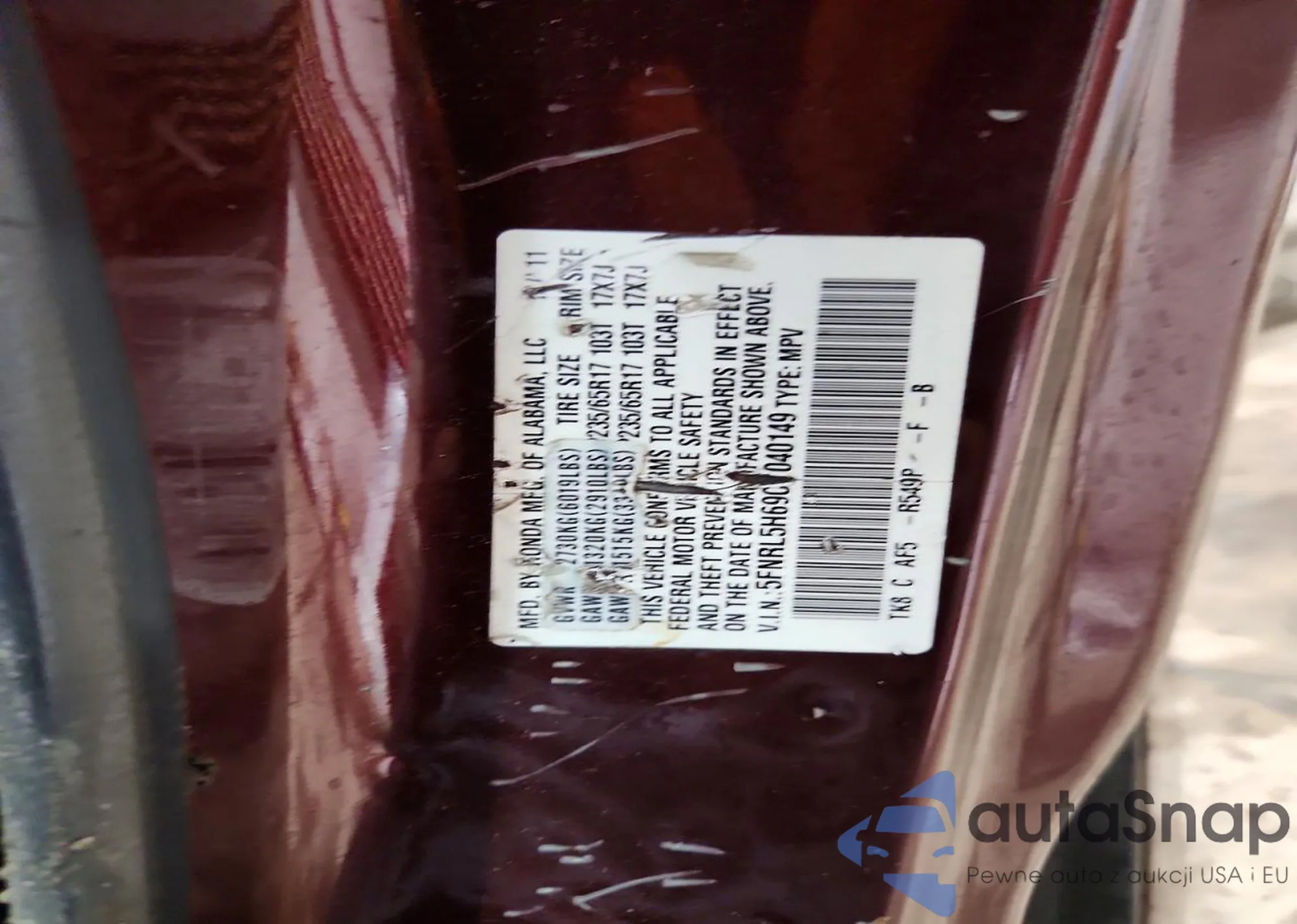 • VIN 5FNRL5H69CB040149