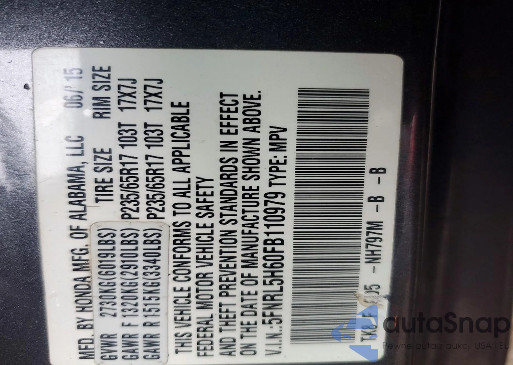 • VIN 5FNRL5H60FB110979