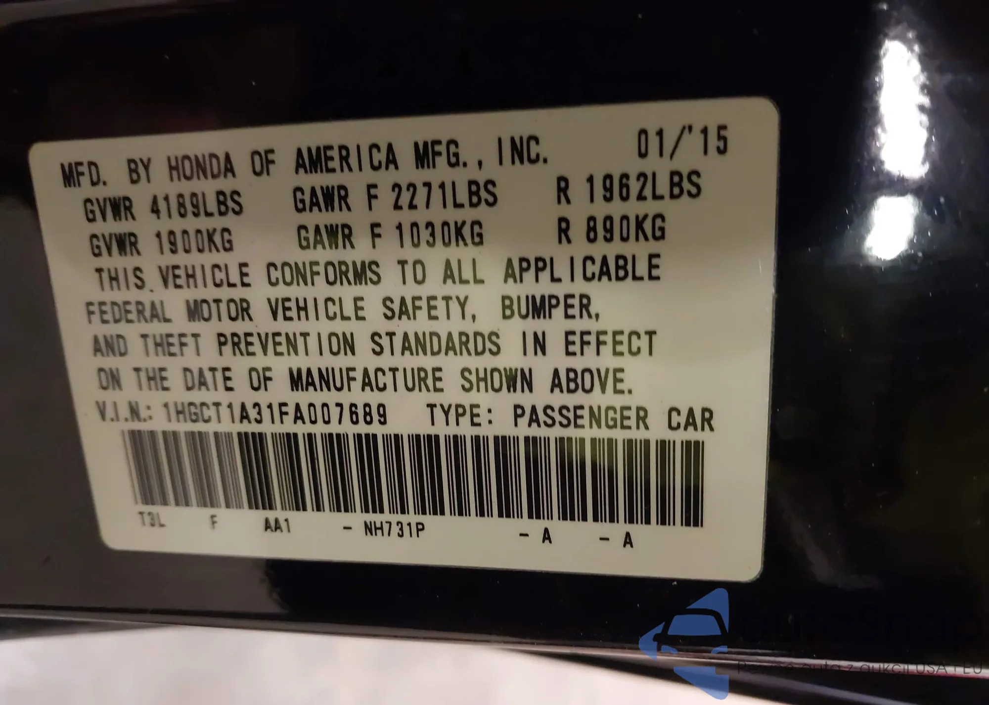 LOT: 43387337 VIN: 1HGCT1A31FA007689