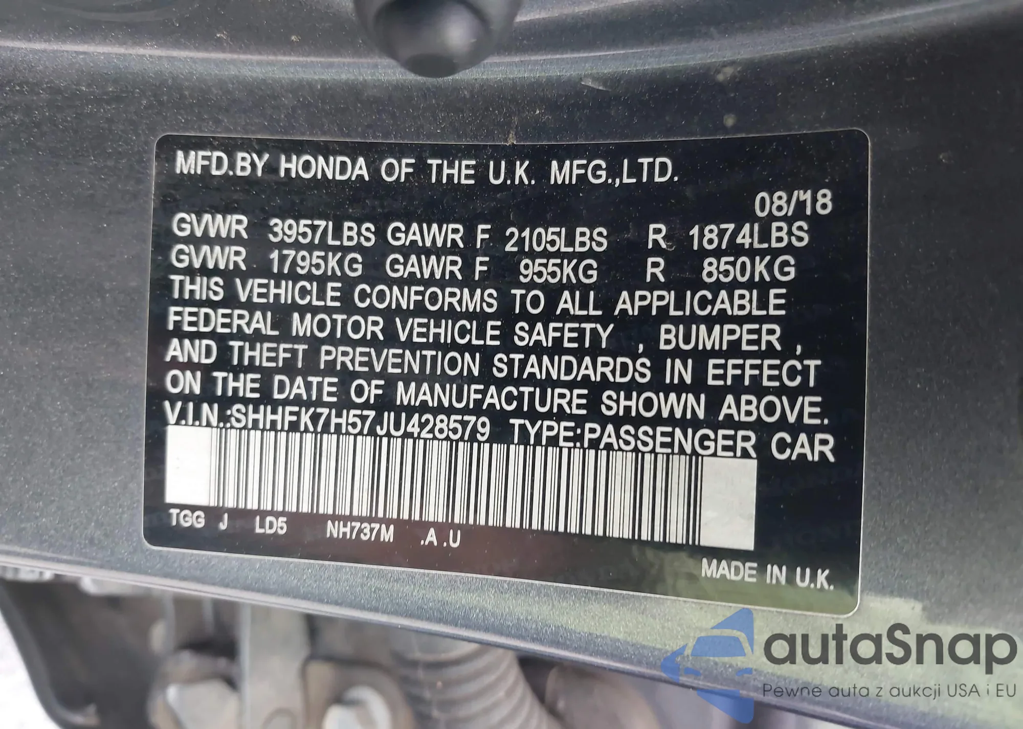 • VIN SHHFK7H57JU428579