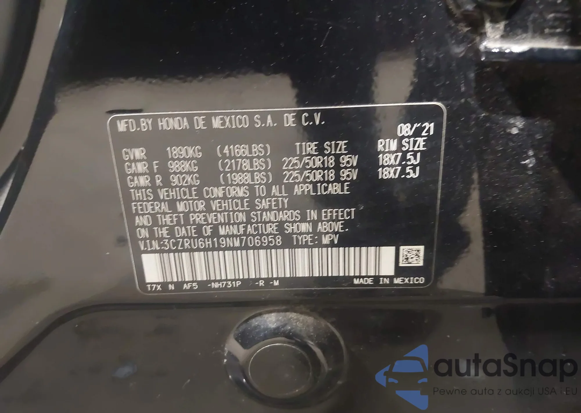 • VIN 3CZRU6H19NM706958
