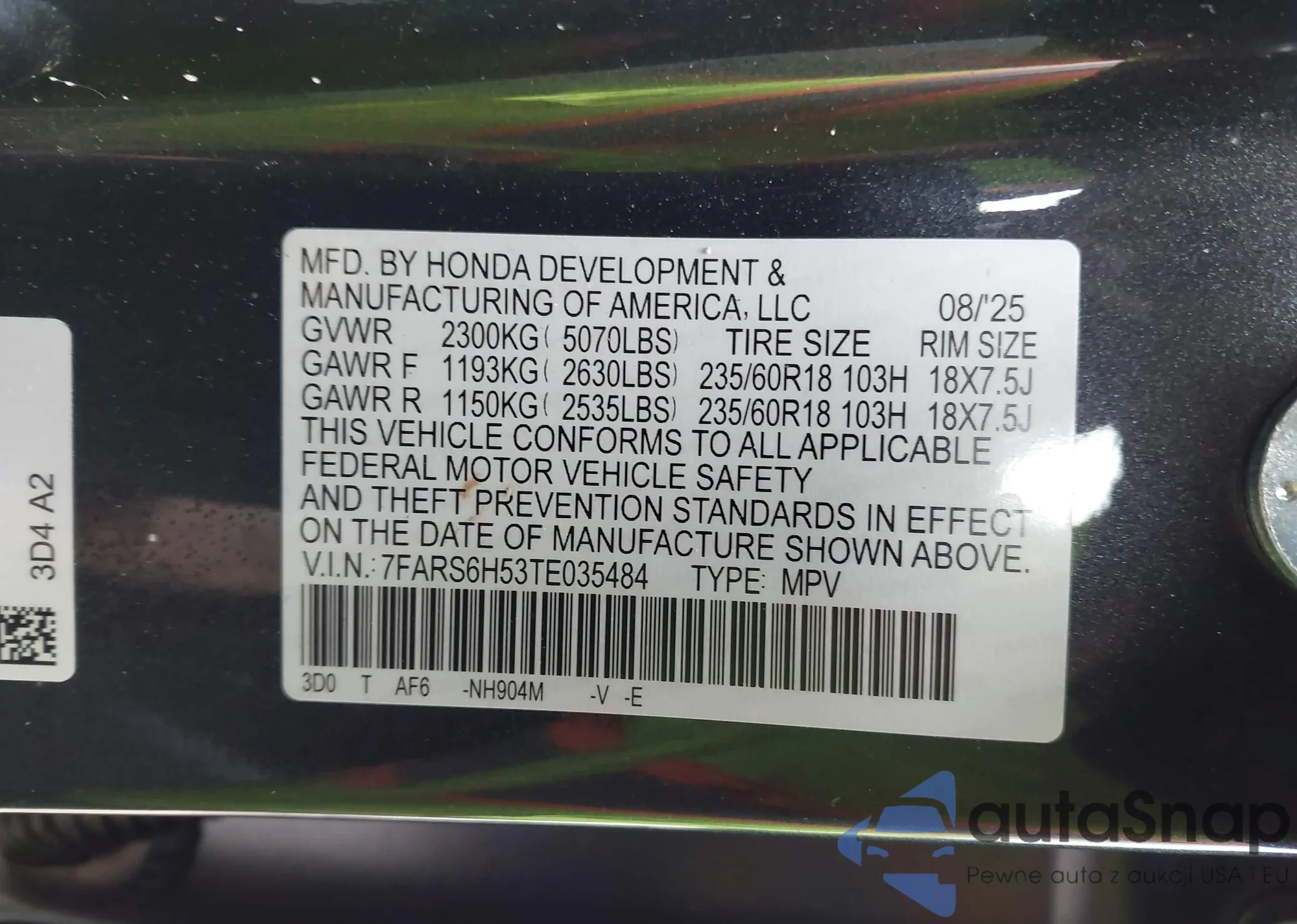 • VIN 7FARS6H53TE035484