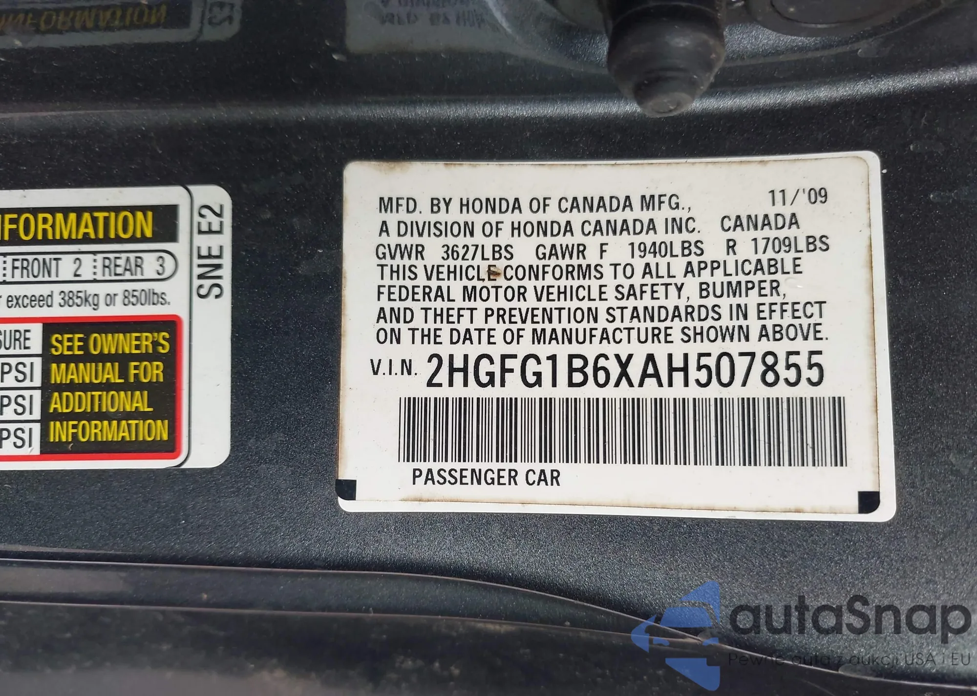 • VIN 2HGFG1B6XAH507855