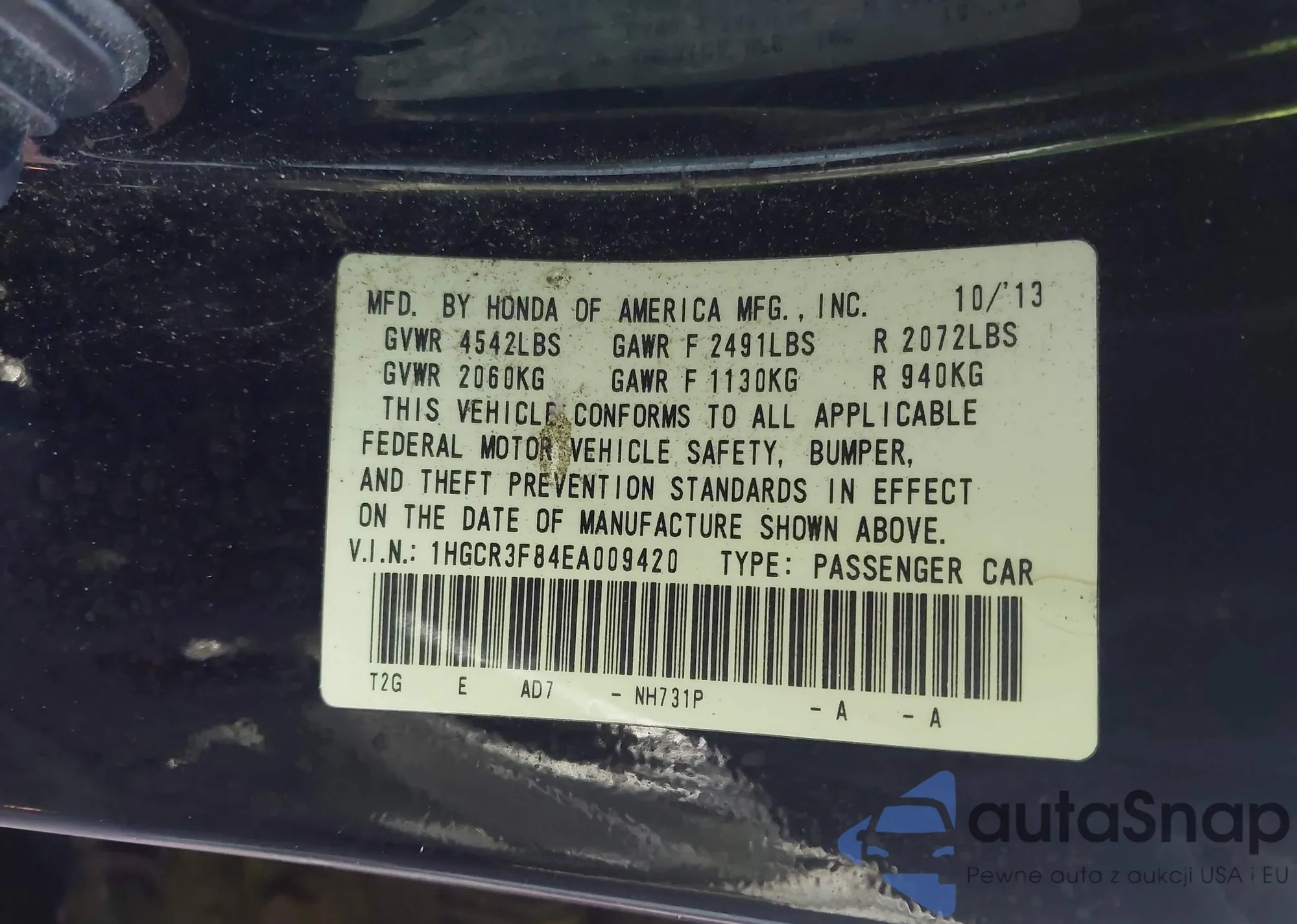 LOT: 44345481 VIN: 1HGCR2F59EA232813