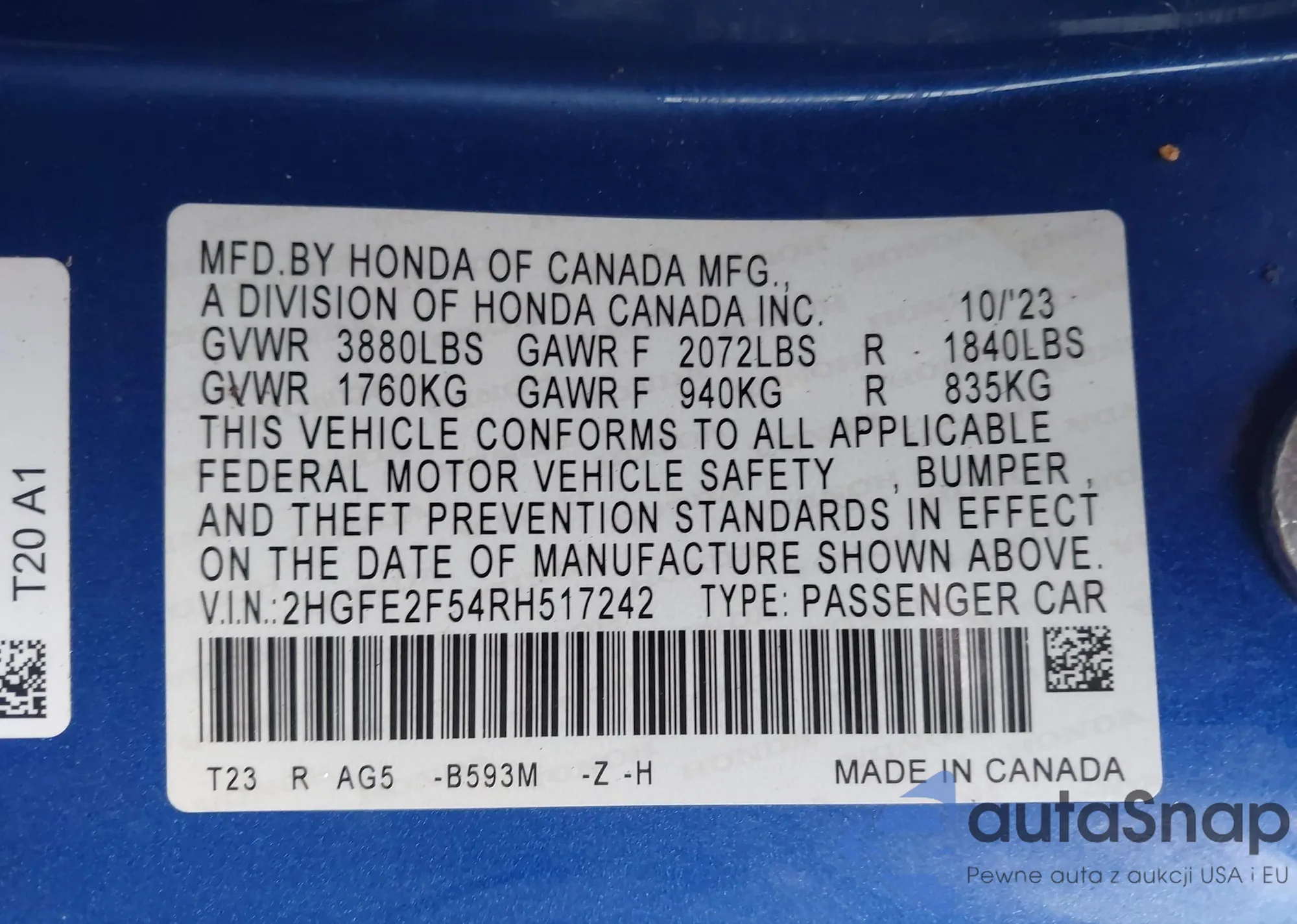 • VIN 2HGFE2F54RH517242
