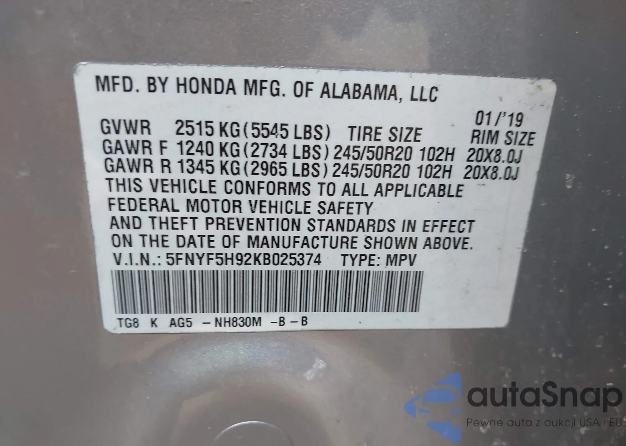 Kup Honda Pilot III z USA