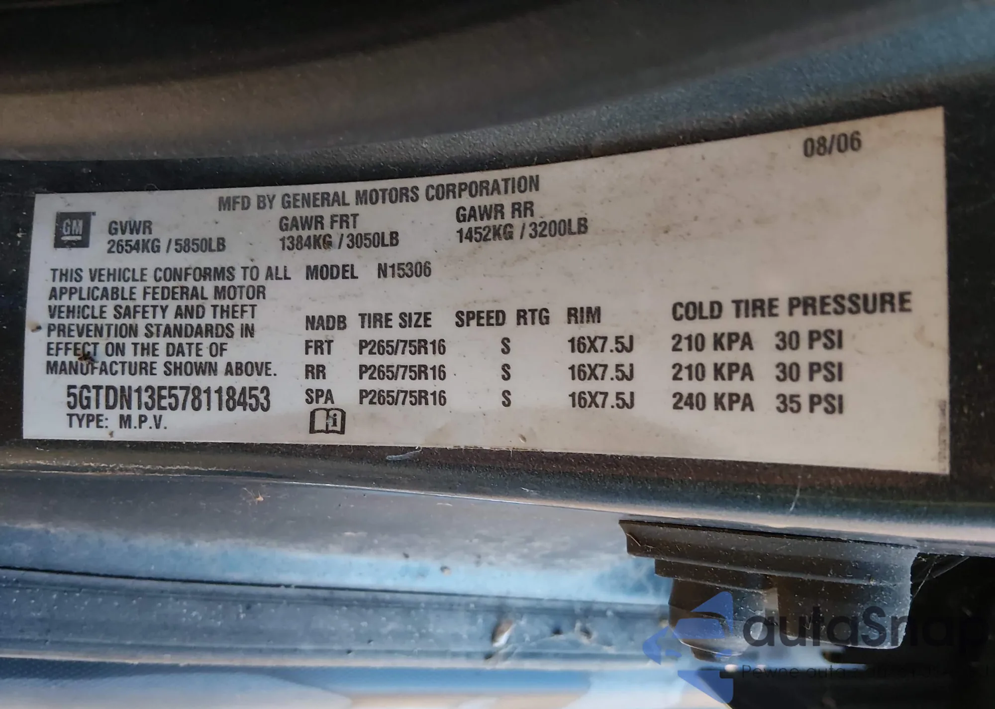 LOT: 44395784 VIN: 5GTDN13E578118453