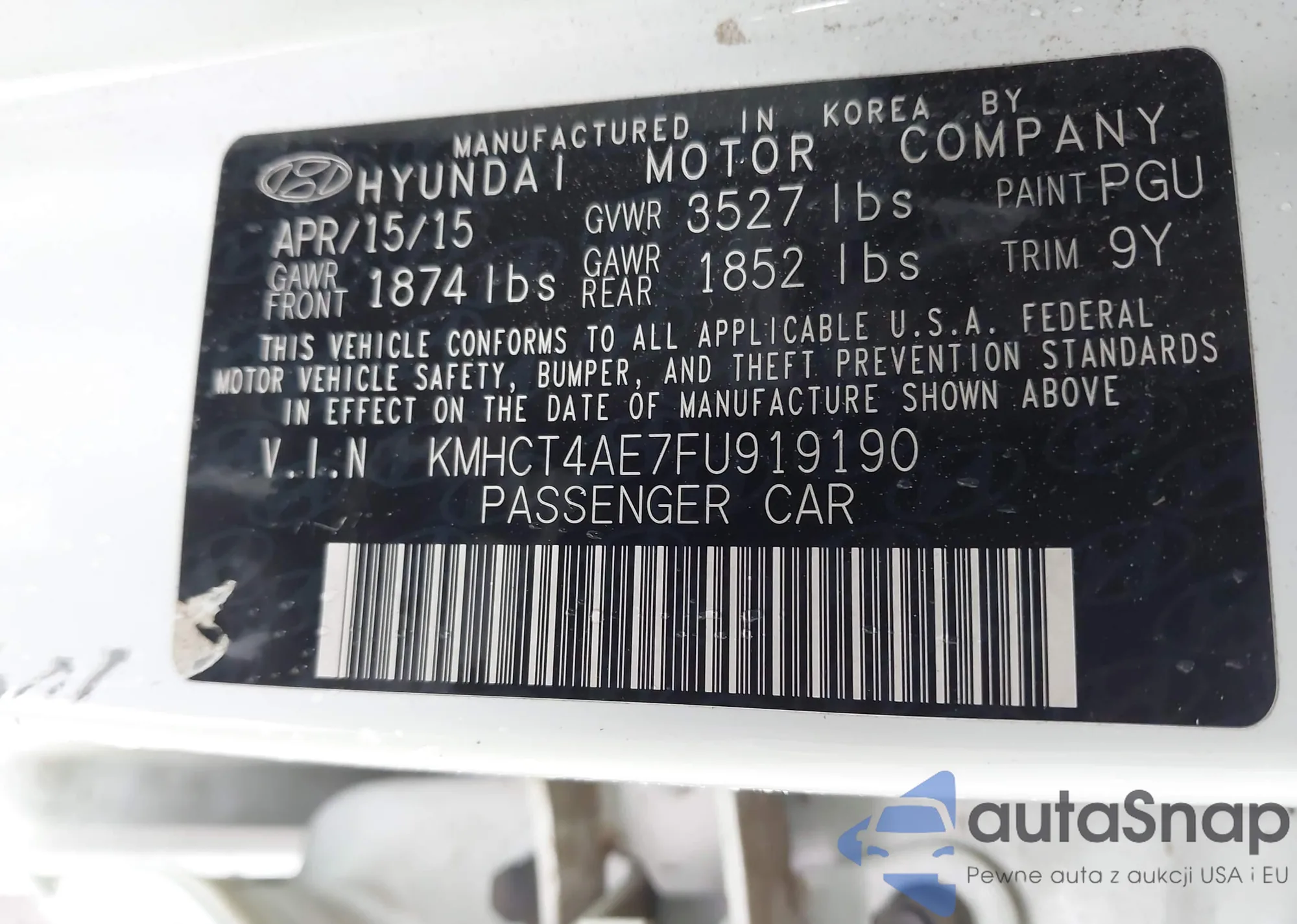 • VIN KMHCT4AE7FU919190
