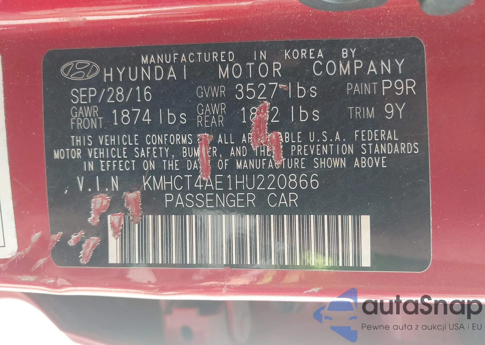 • VIN KMHCT4AE1HU220866