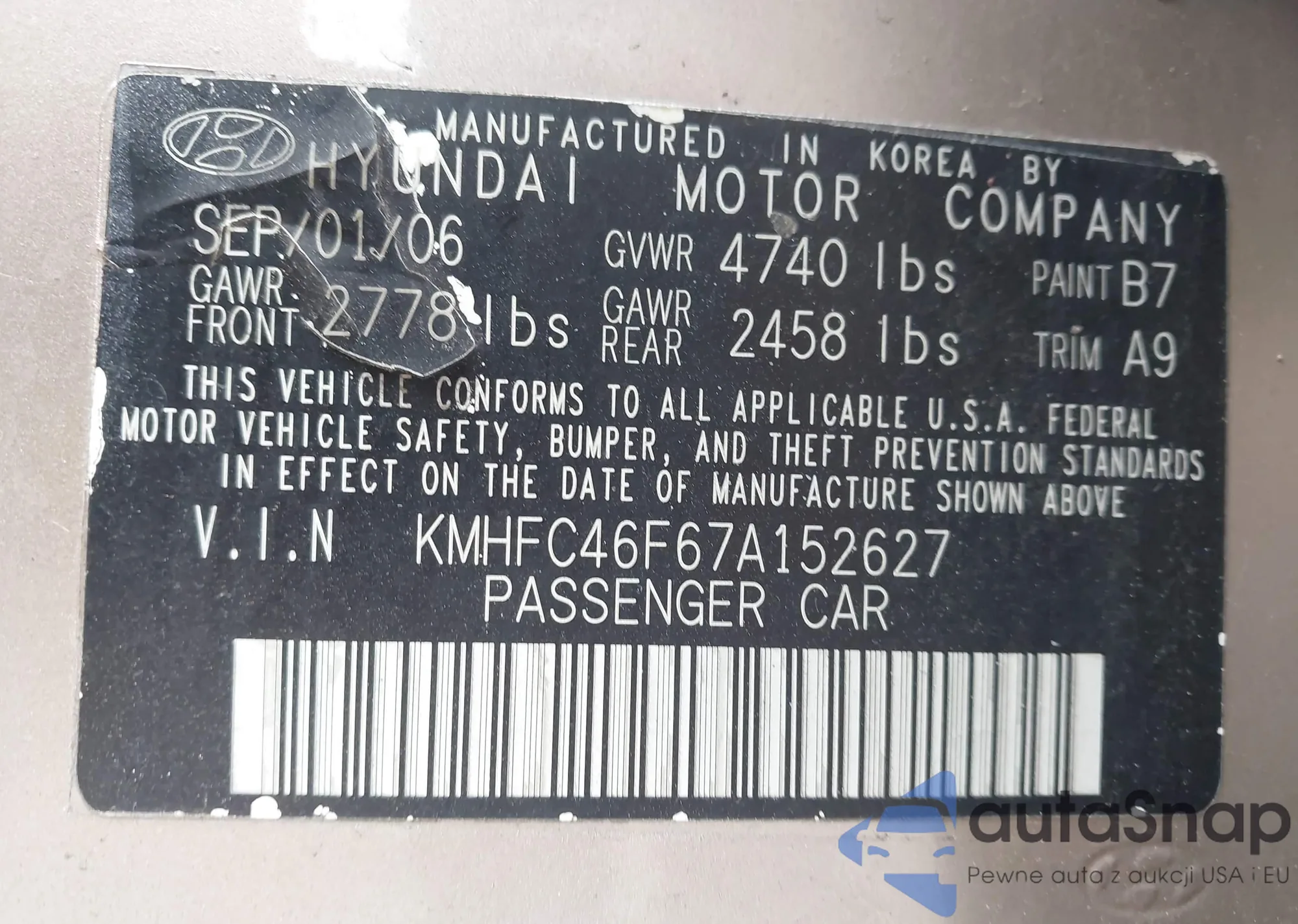 • VIN KMHFC46F67A152627