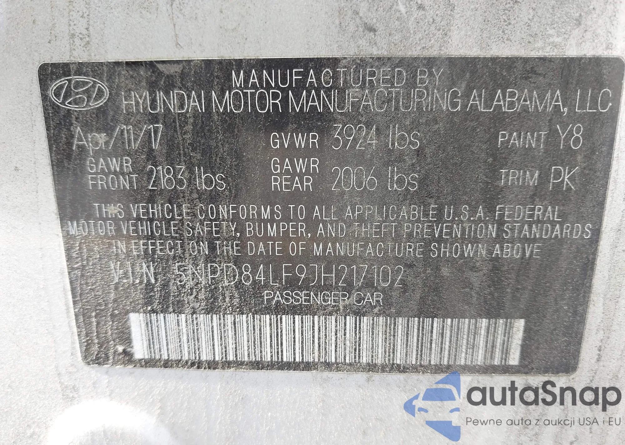 • VIN 5NPD84LF9JH217102