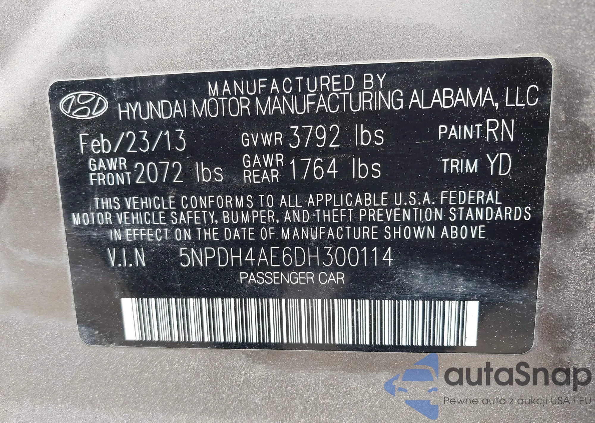 LOT: 44413056 VIN: 5NPDH4AE6DH300114