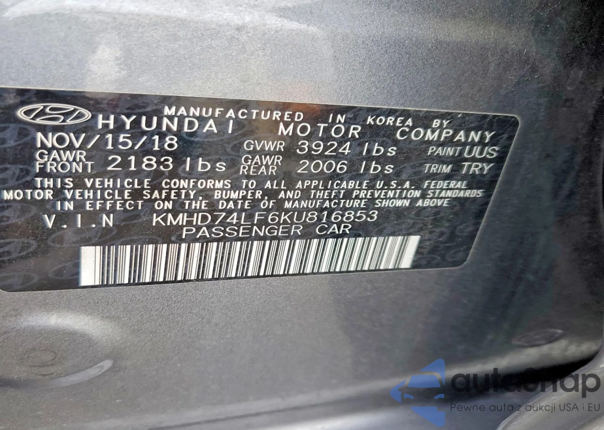 LOT: 98656025 VIN: KMHD74LF6KU816853