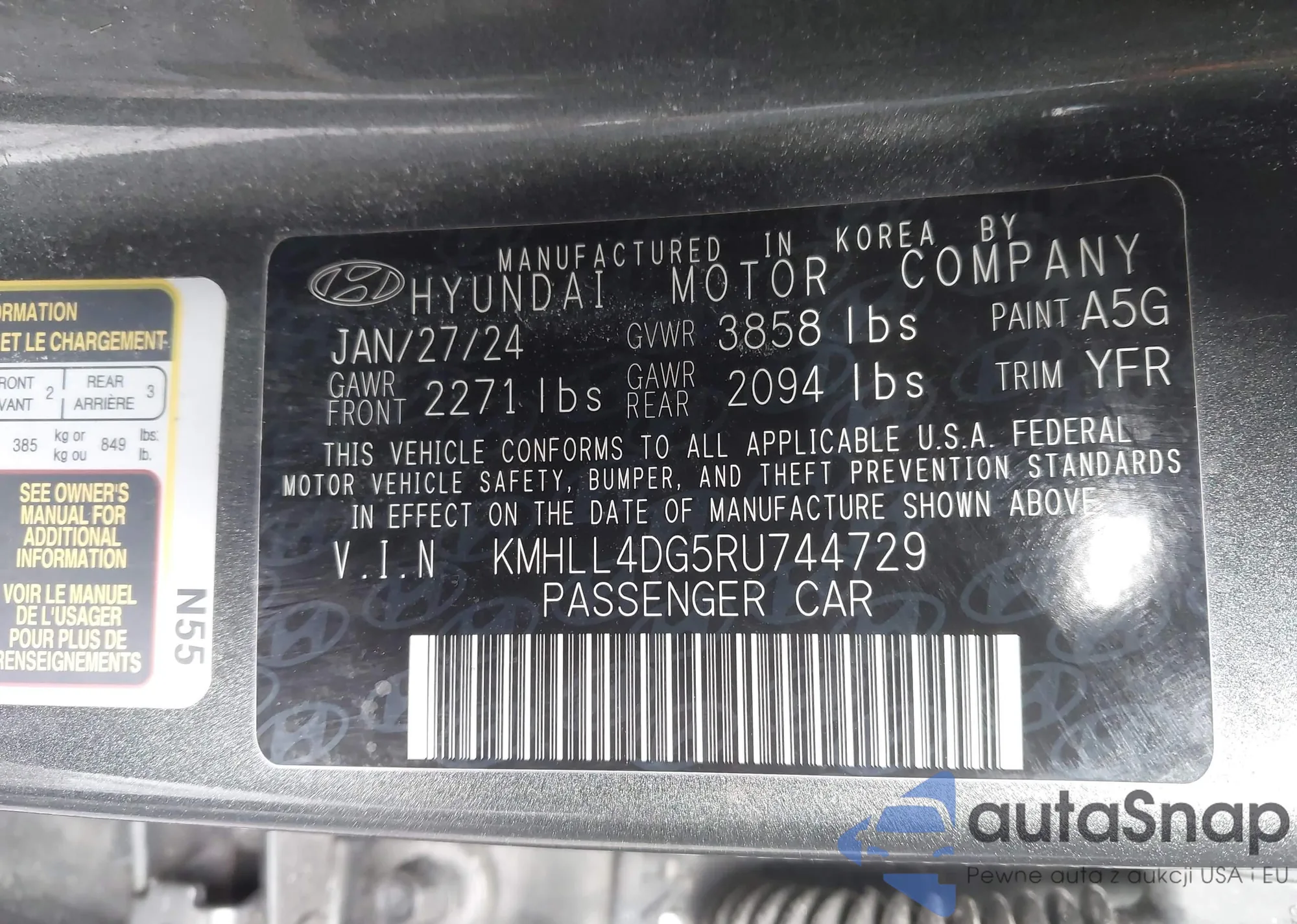 • VIN KMHLL4DG5RU744729
