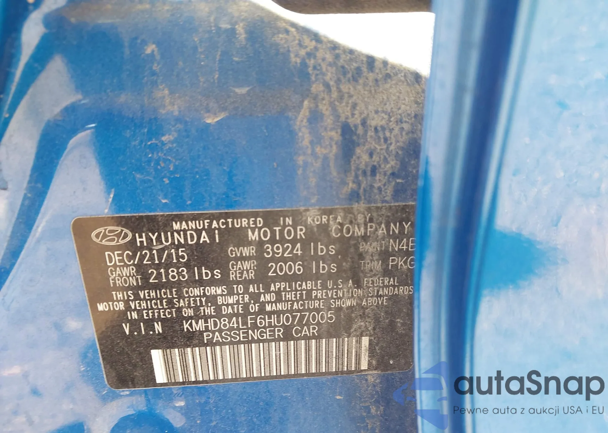 • VIN KMHD84LF6HU077005