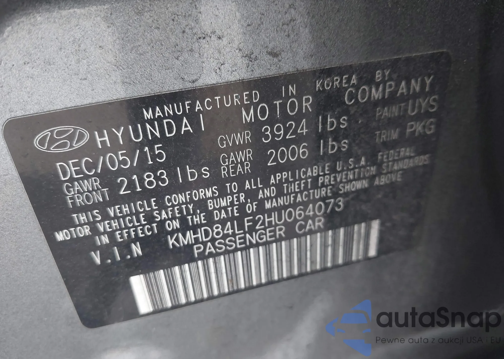 • VIN KMHD84LF2HU064073