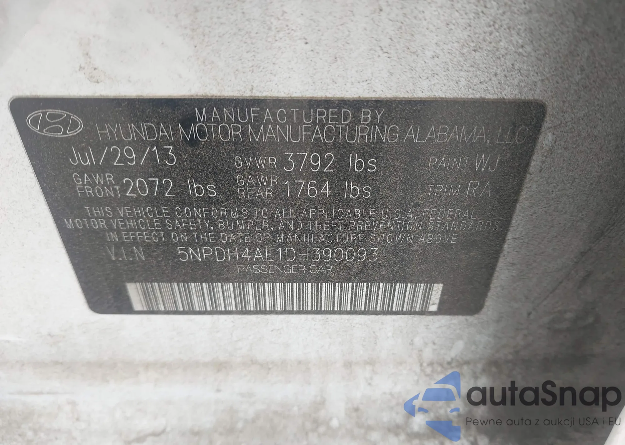 • VIN 5NPDH4AE1DH390093