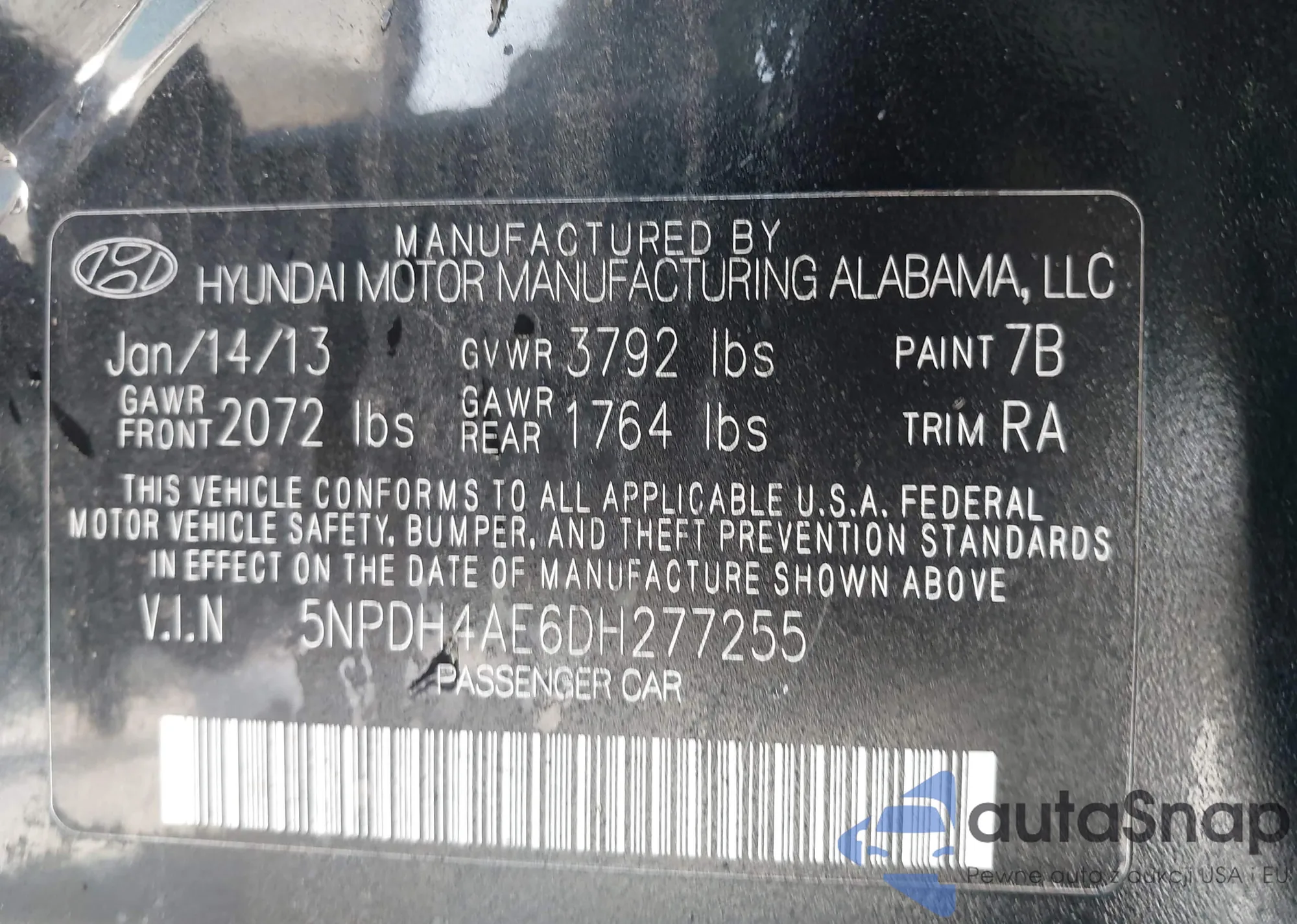 • VIN 5NPDH4AE6DH277255