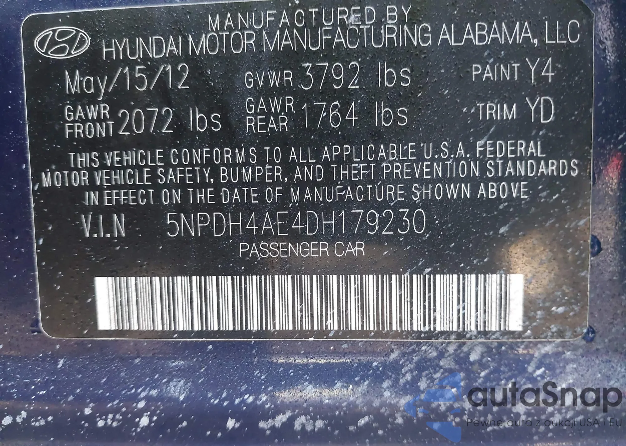 • VIN 5NPDH4AE4DH179230