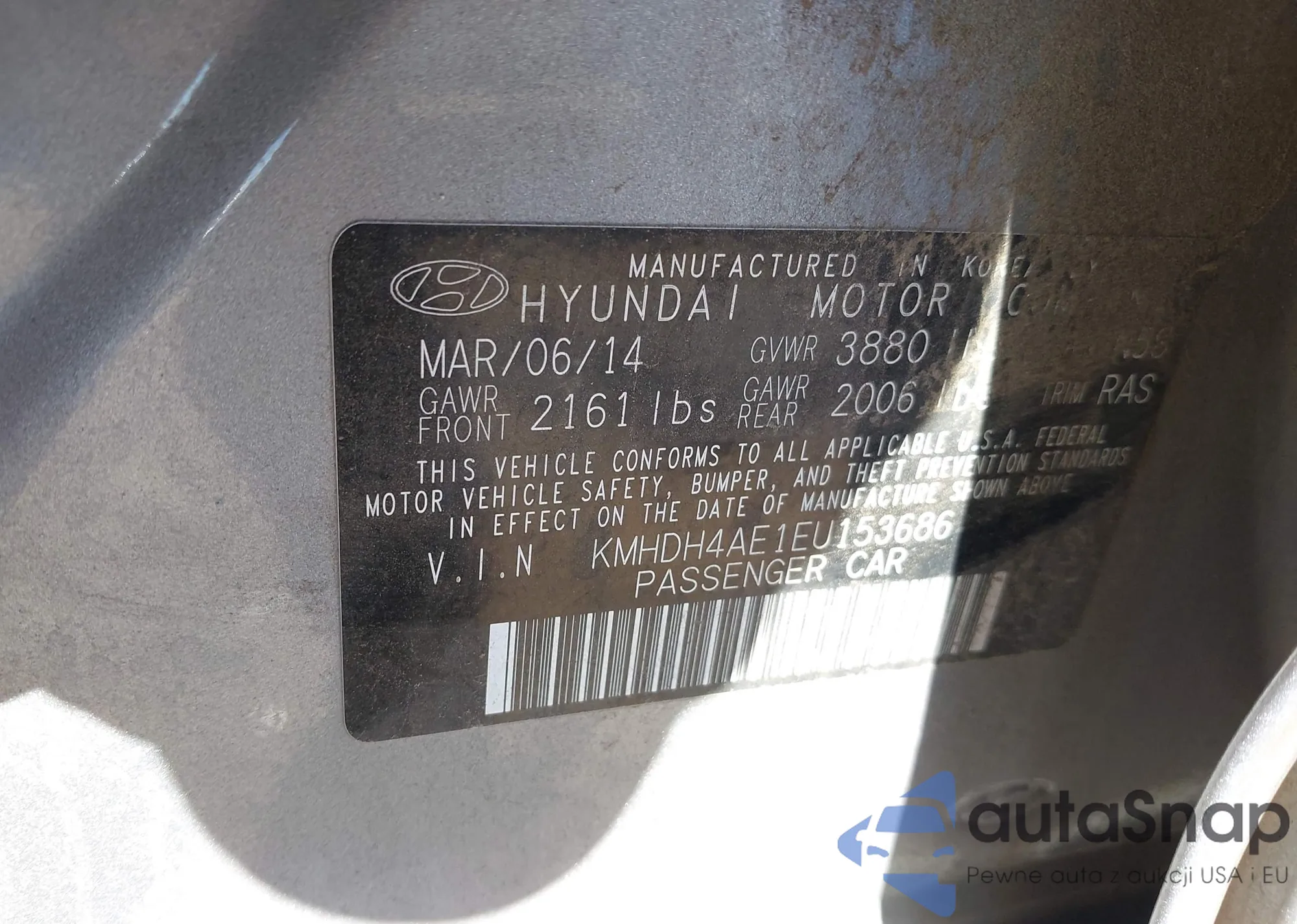 • VIN KMHDH4AE1EU153686