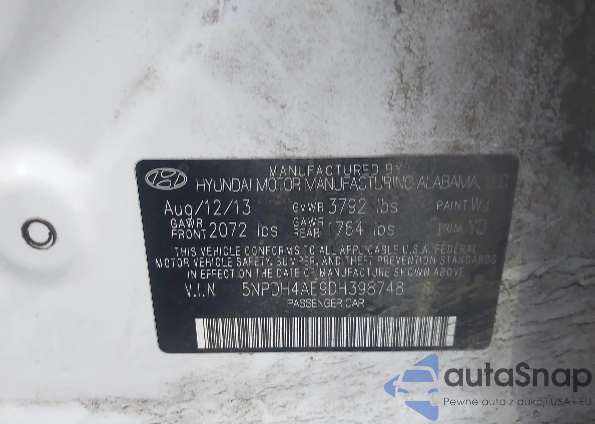 LOT: 44179354 VIN: 5NPDH4AE5DH274850