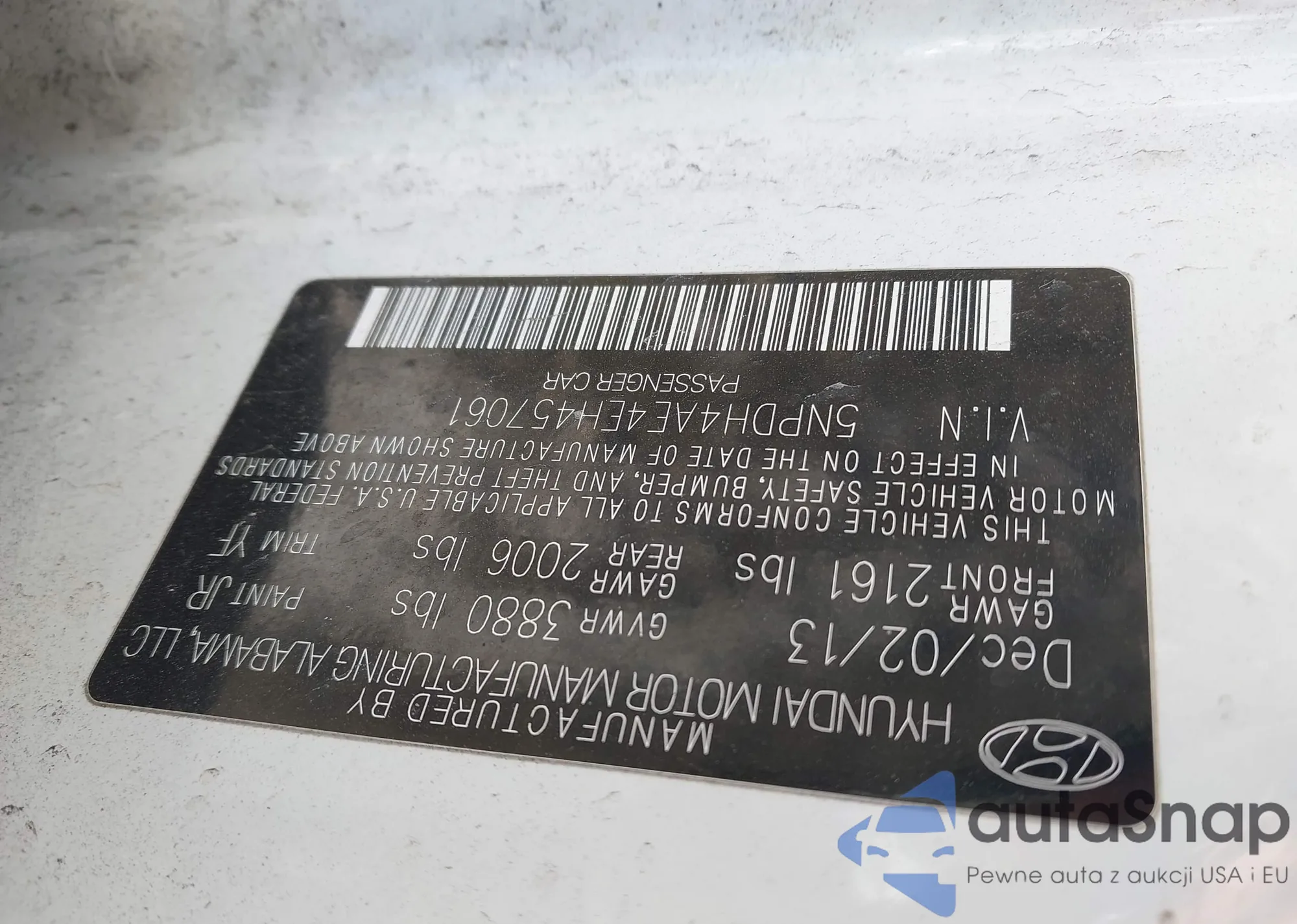 • VIN 5NPDH4AE8DH393881