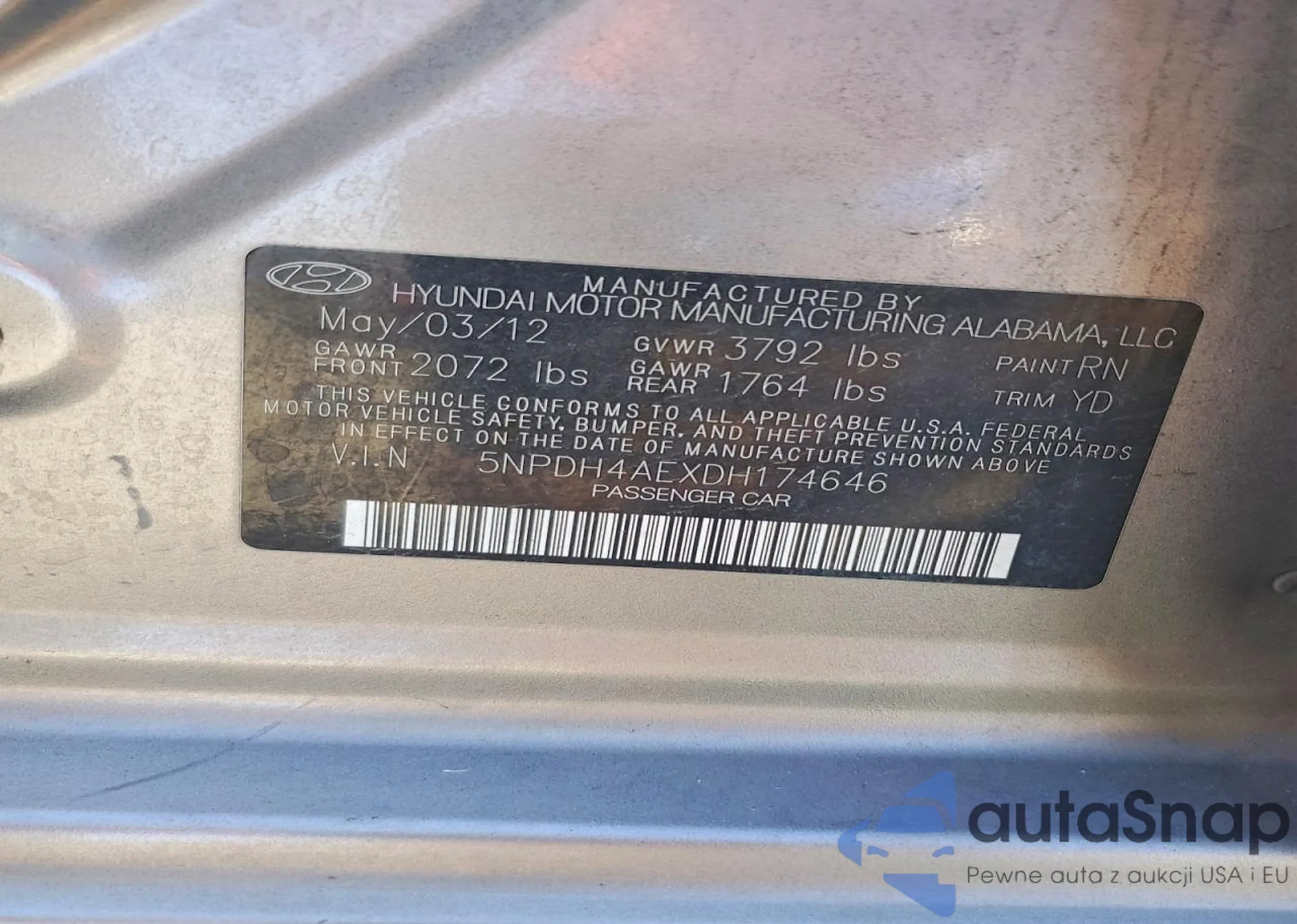 LOT: 76030245 VIN: KMHDH4AE8DU996864
