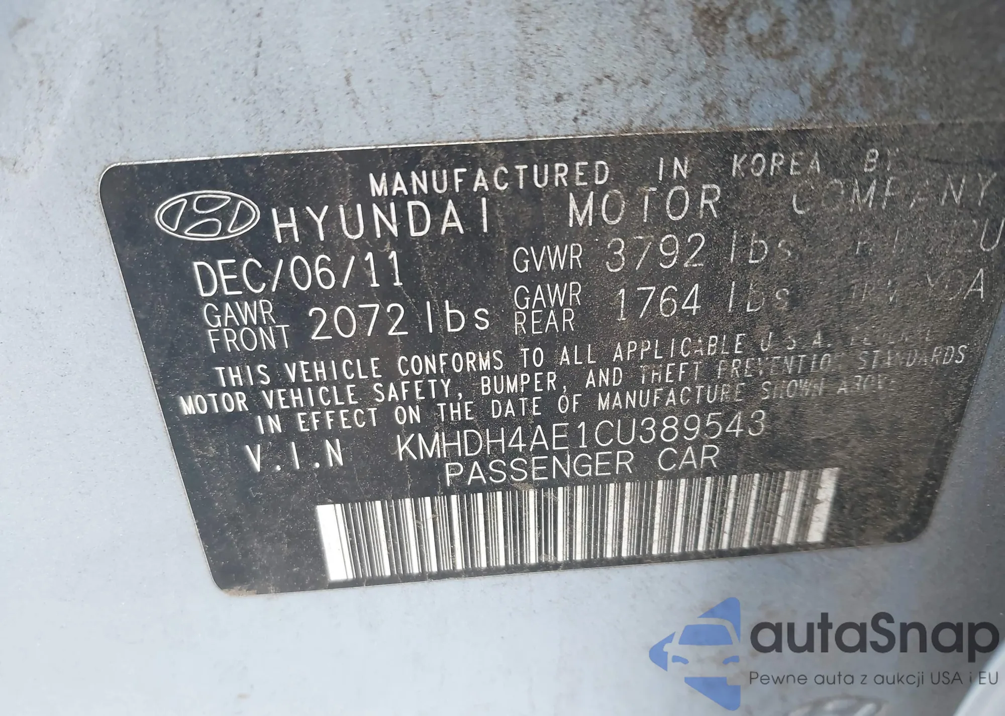 • VIN KMHDH4AE1CU389543