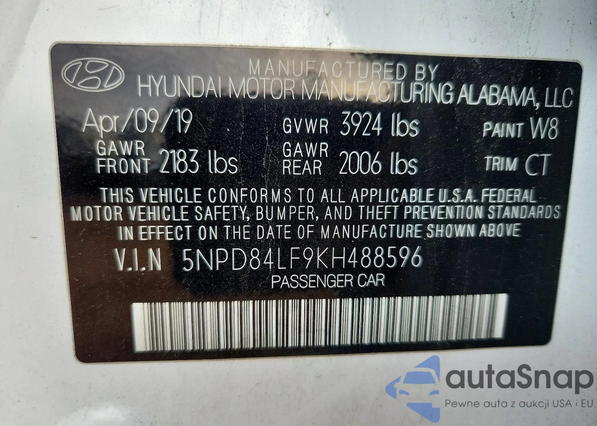 • VIN 5NPD84LF9KH488596