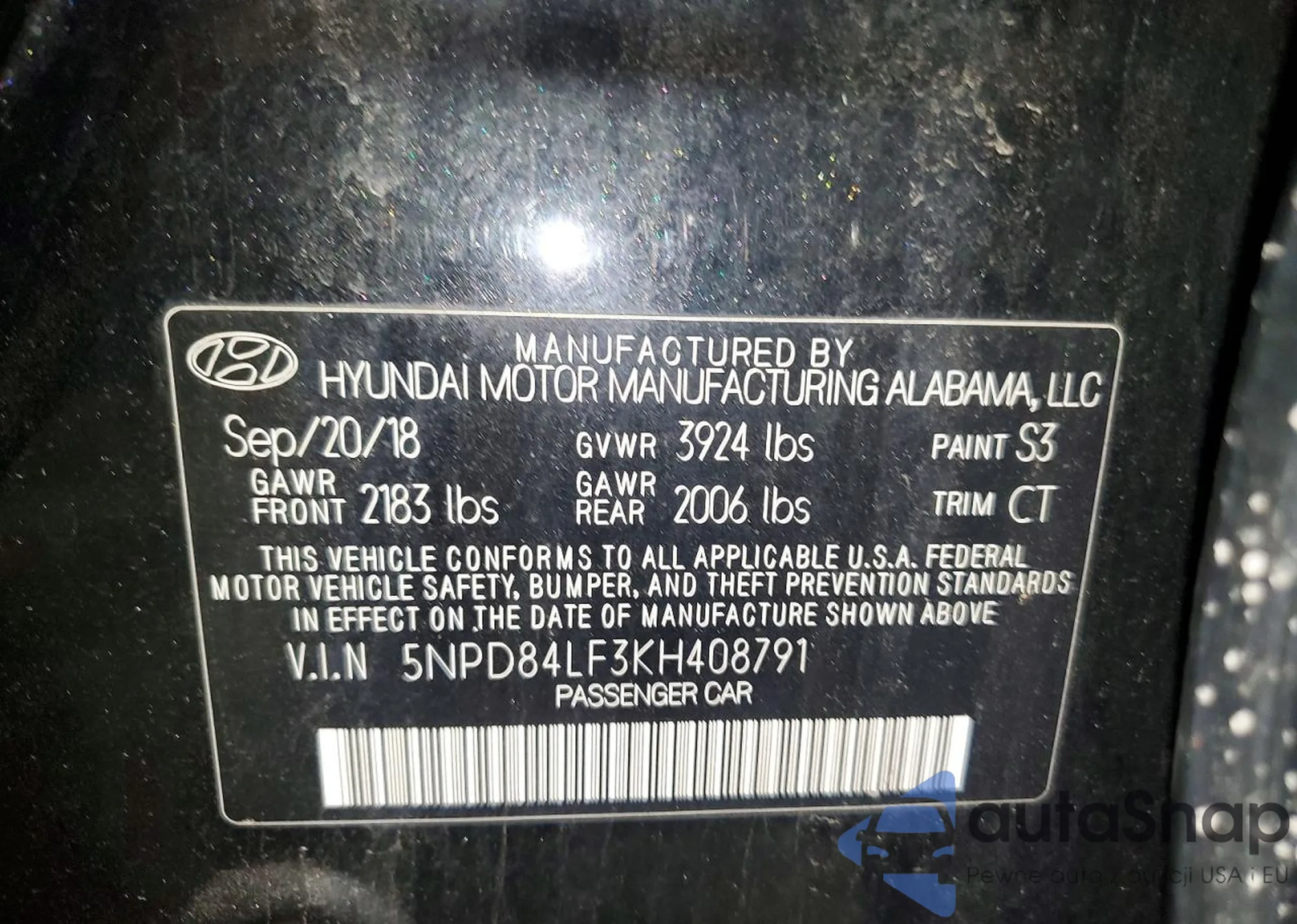 • VIN 5NPD84LF3KH408791