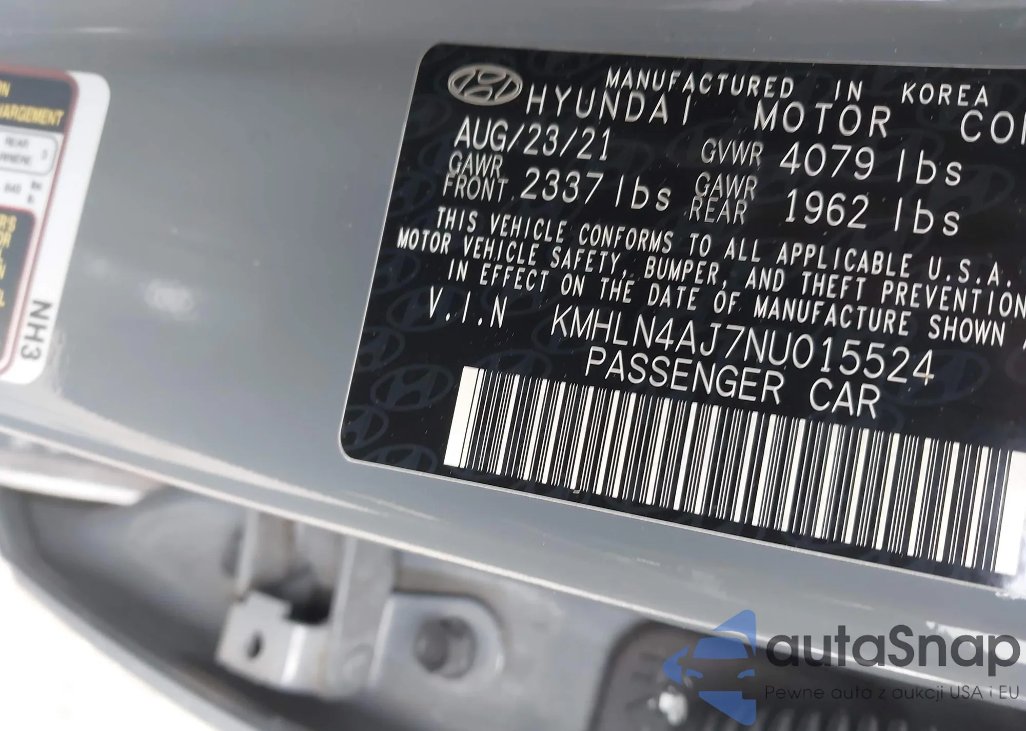 • VIN KMHLN4AJ7NU015524