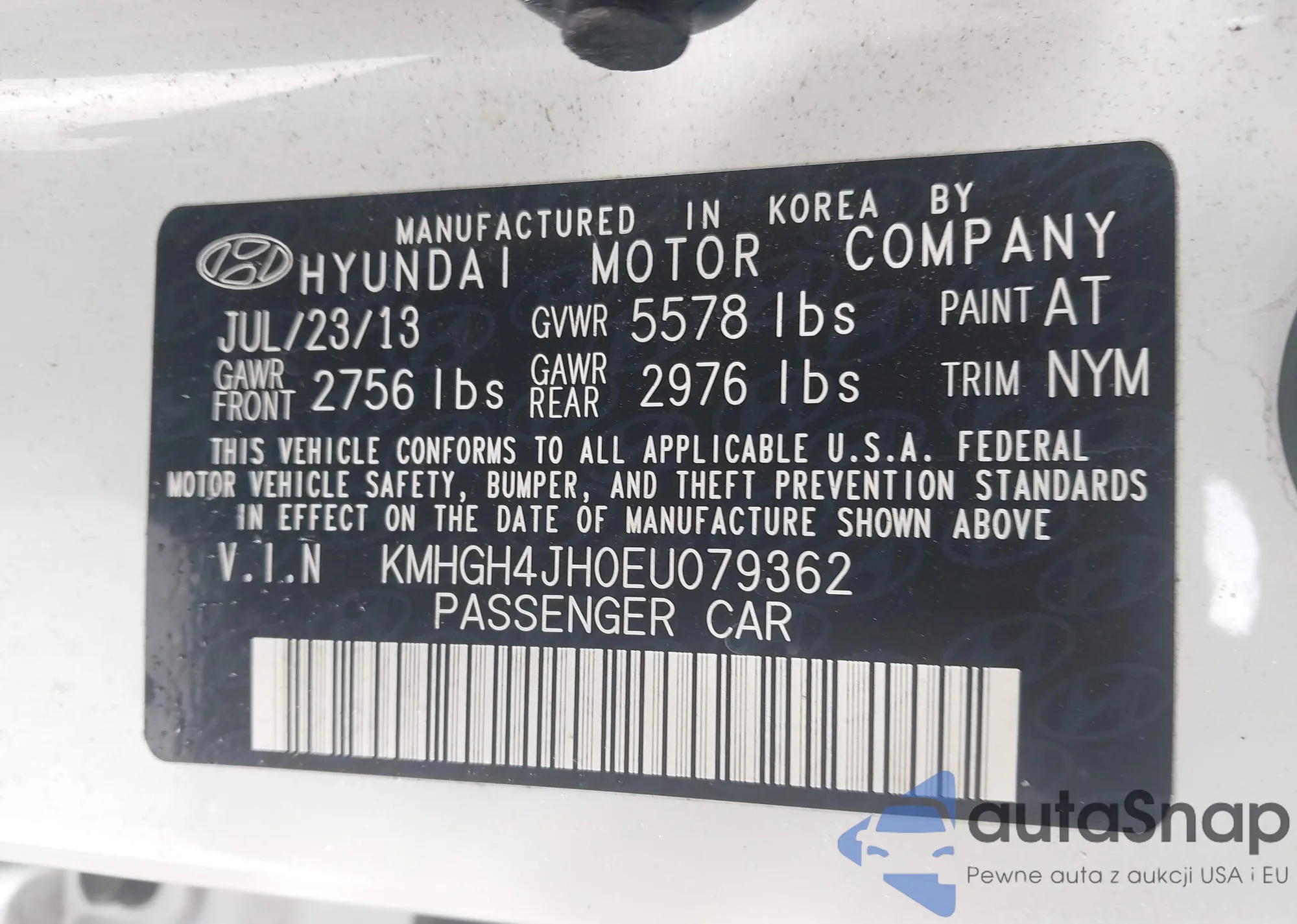 • VIN KMHGH4JH0EU079362