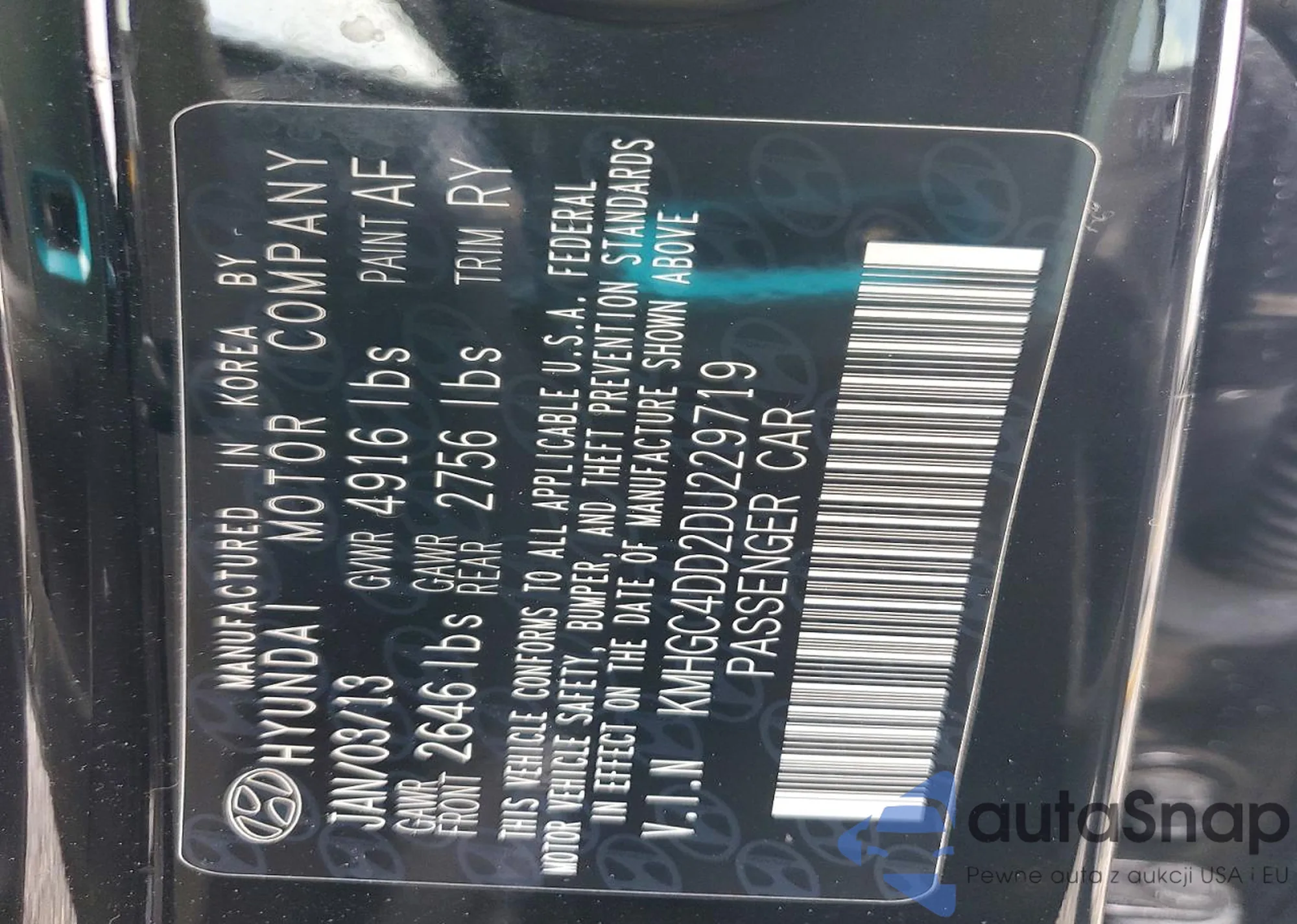 LOT: 75869145 VIN: KMHGC4DD2DU229719