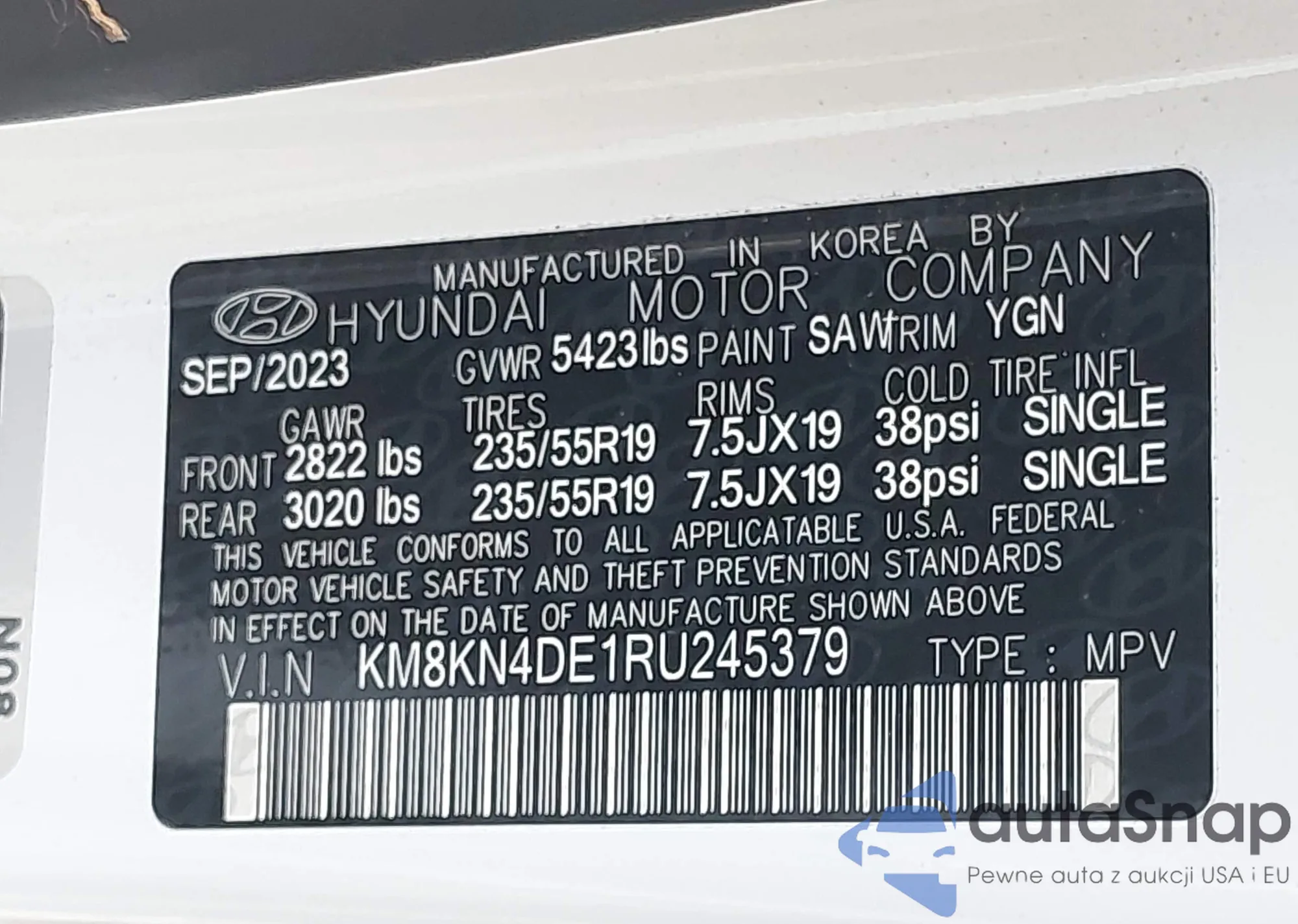 • VIN KM8KN4DE1RU245379