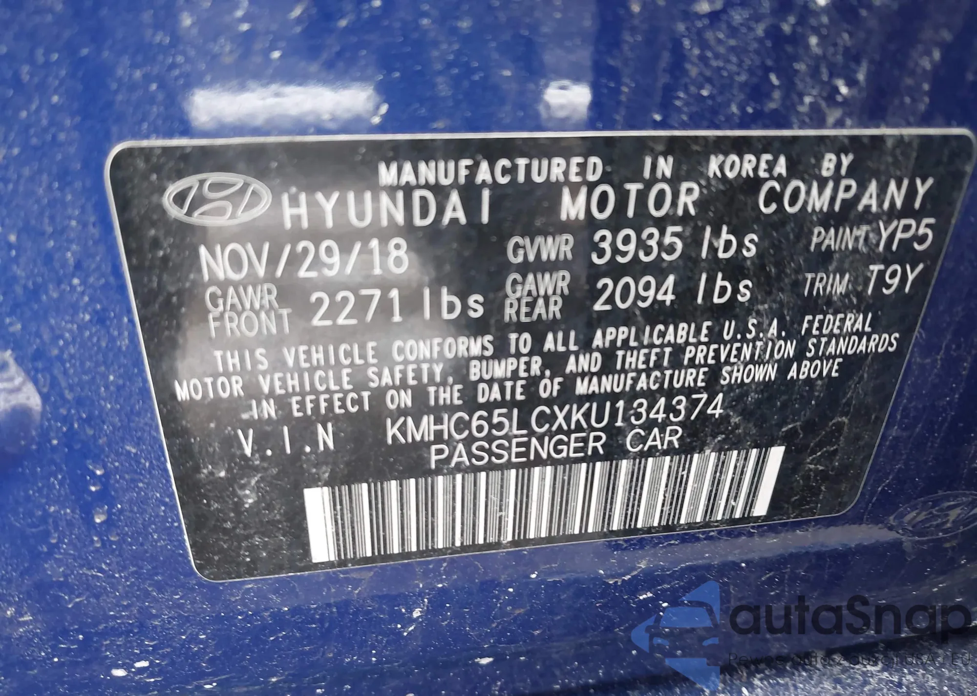 LOT: 44275239 VIN: KMHC65LCXKU134374