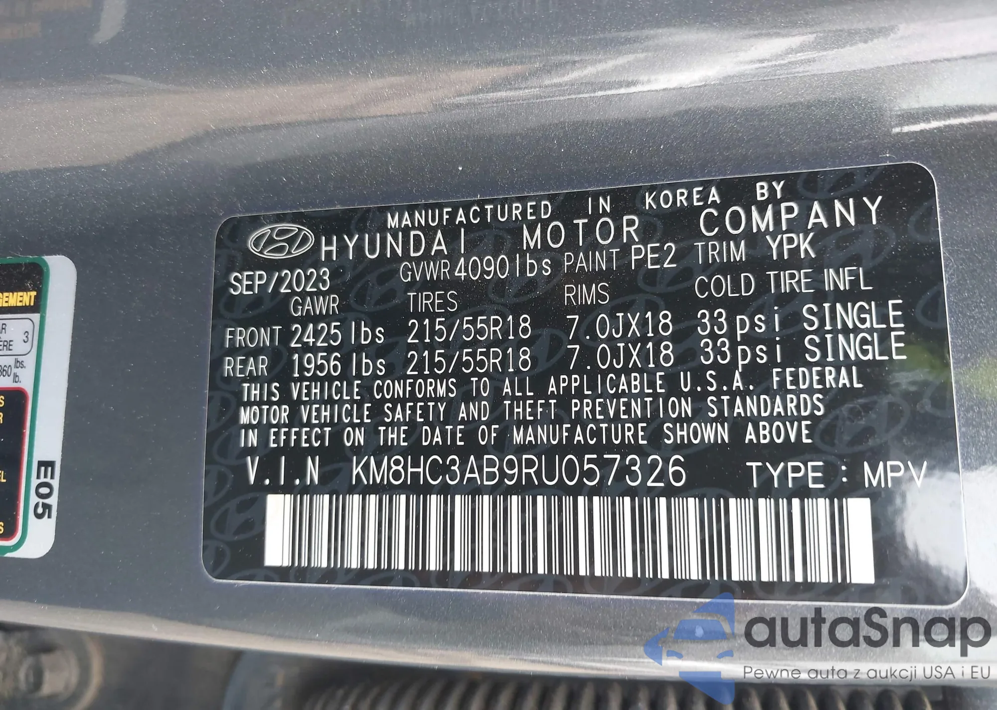 • VIN KM8K6CAB8PU046425