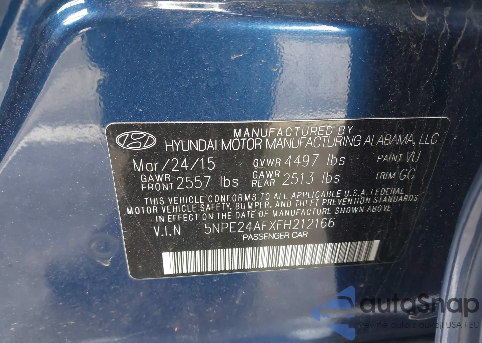 • VIN 5NPE24AF7FH175013
