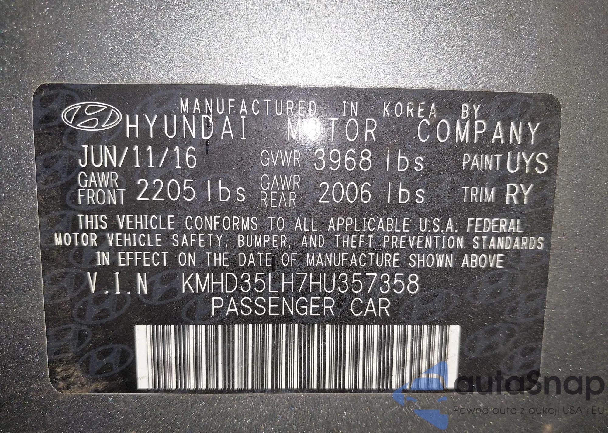 • VIN KMHD35LH7HU357358