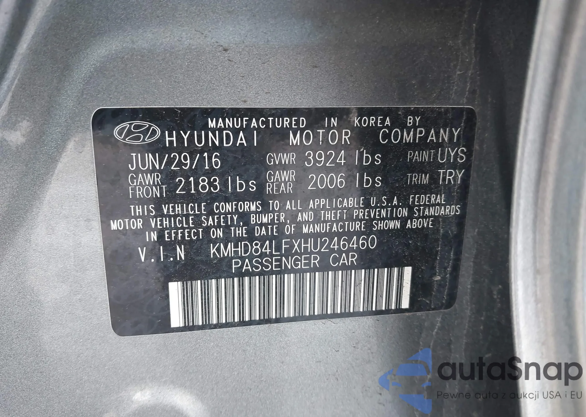LOT: 44109734 VIN: KMHD84LFXHU246460