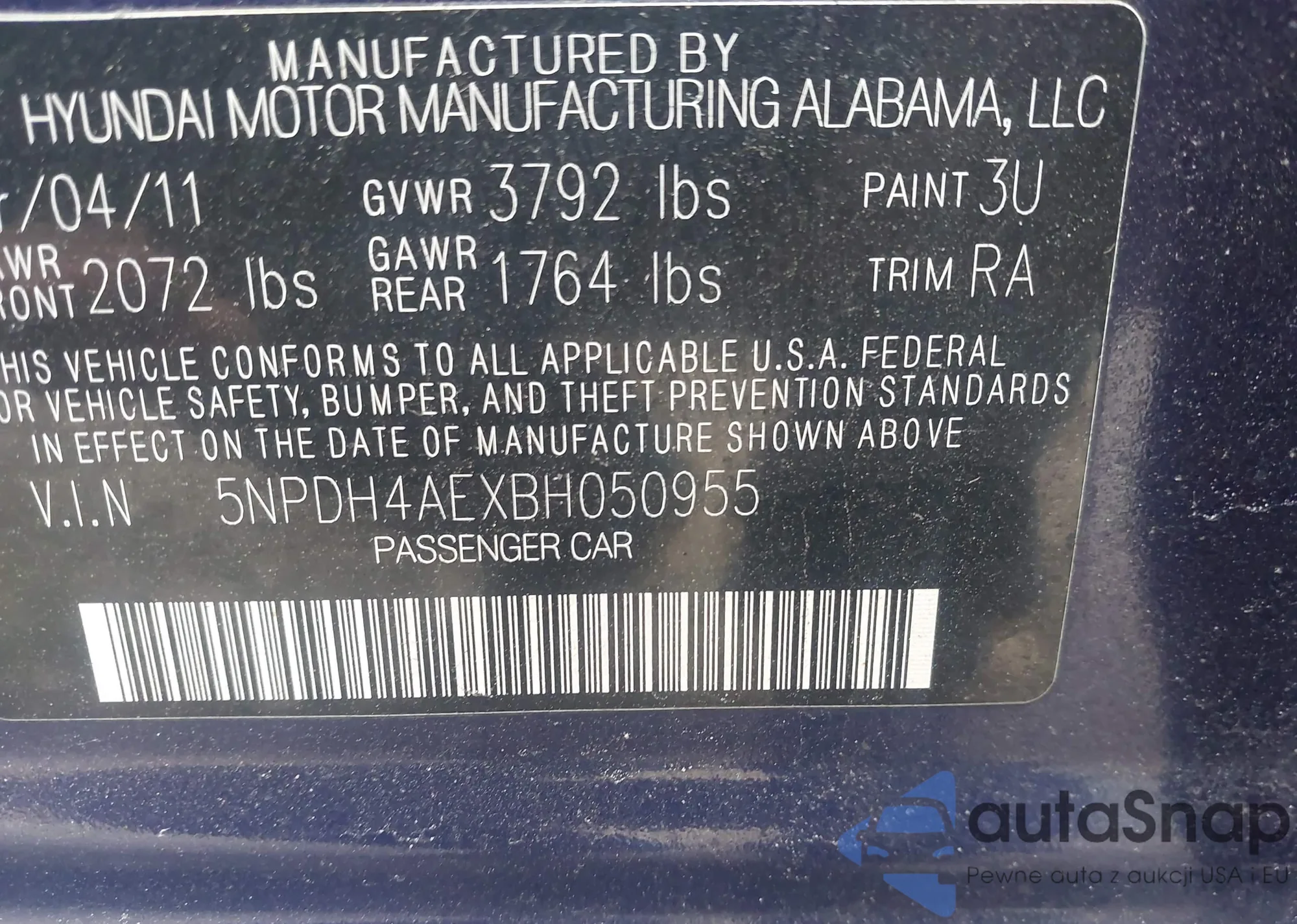 LOT: 44117760 VIN: 5NPDH4AEXBH050955