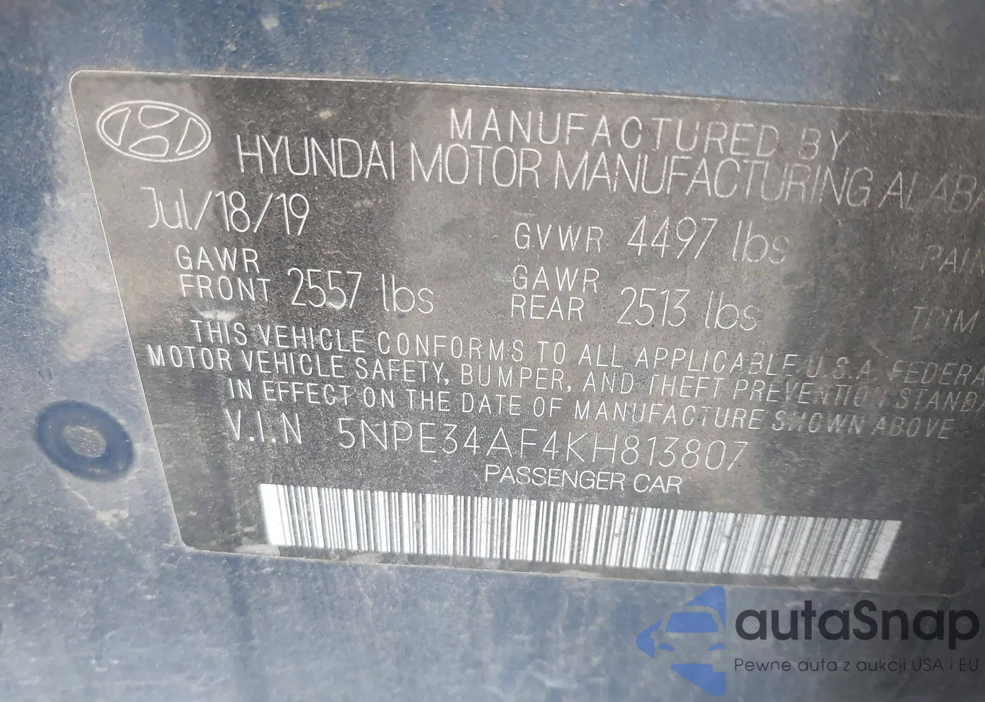 • VIN 5NPE34AF4KH813807