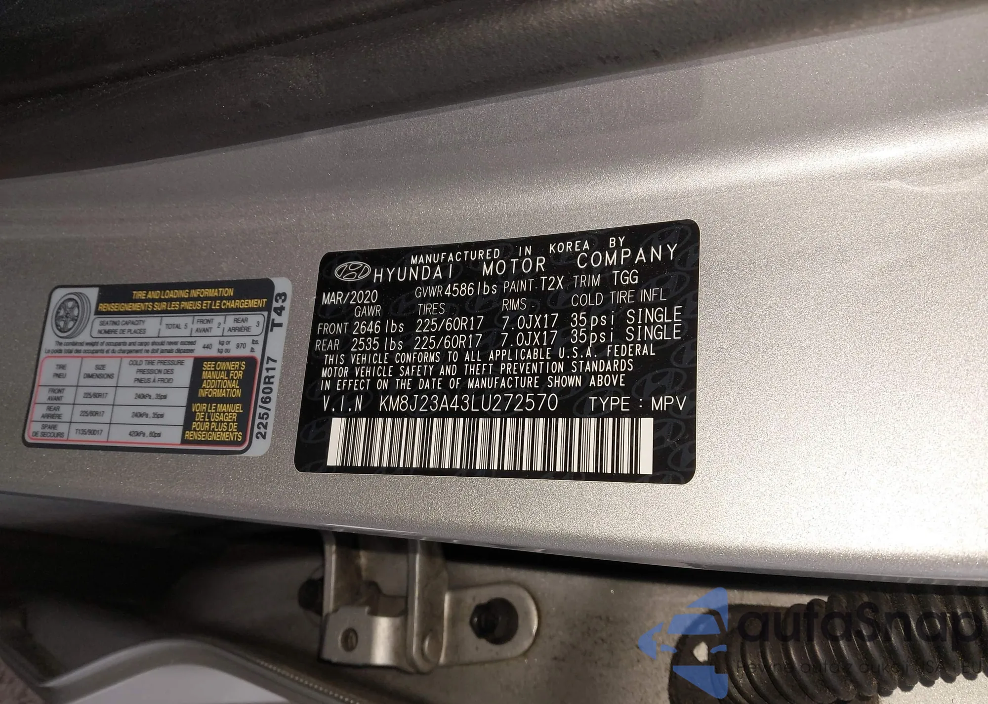 • VIN KM8J23A43LU272570