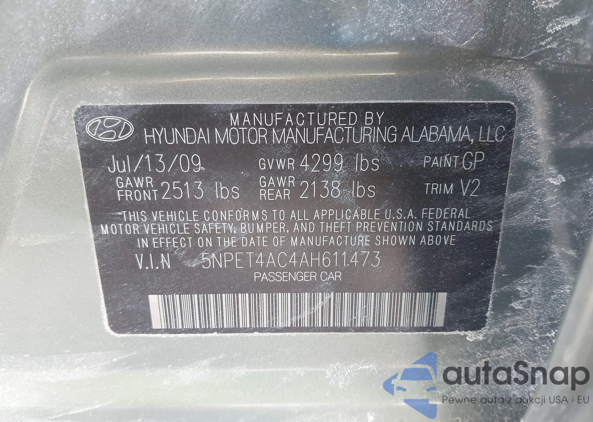 • VIN 5NPET4AC4AH611473
