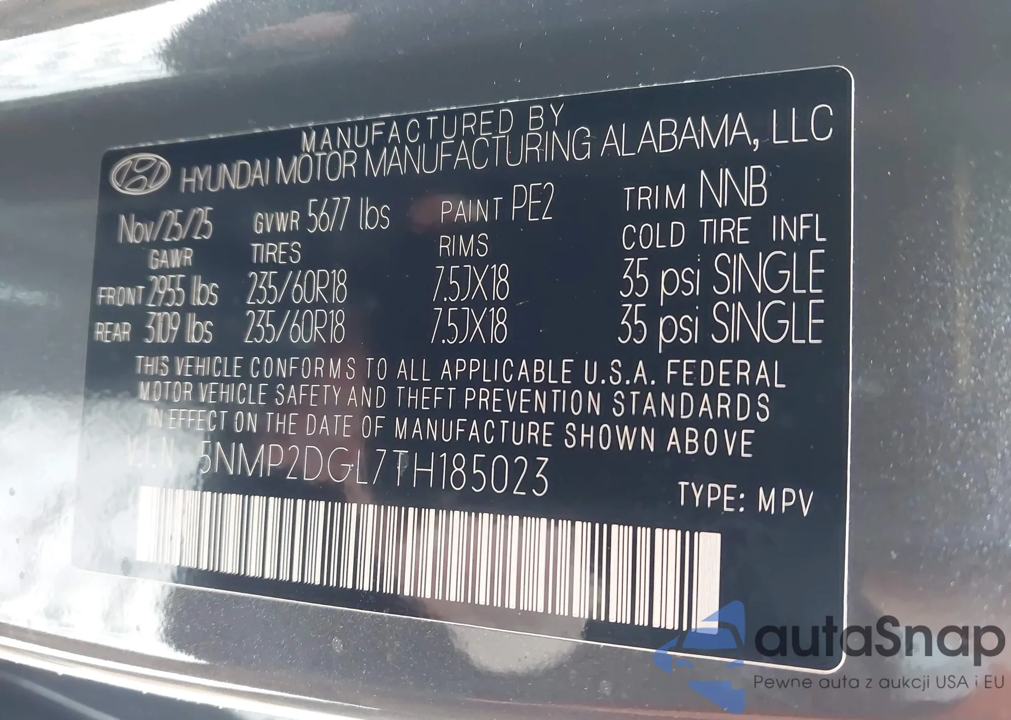 LOT: 44380641 VIN: 5NMP2DGL7TH185023