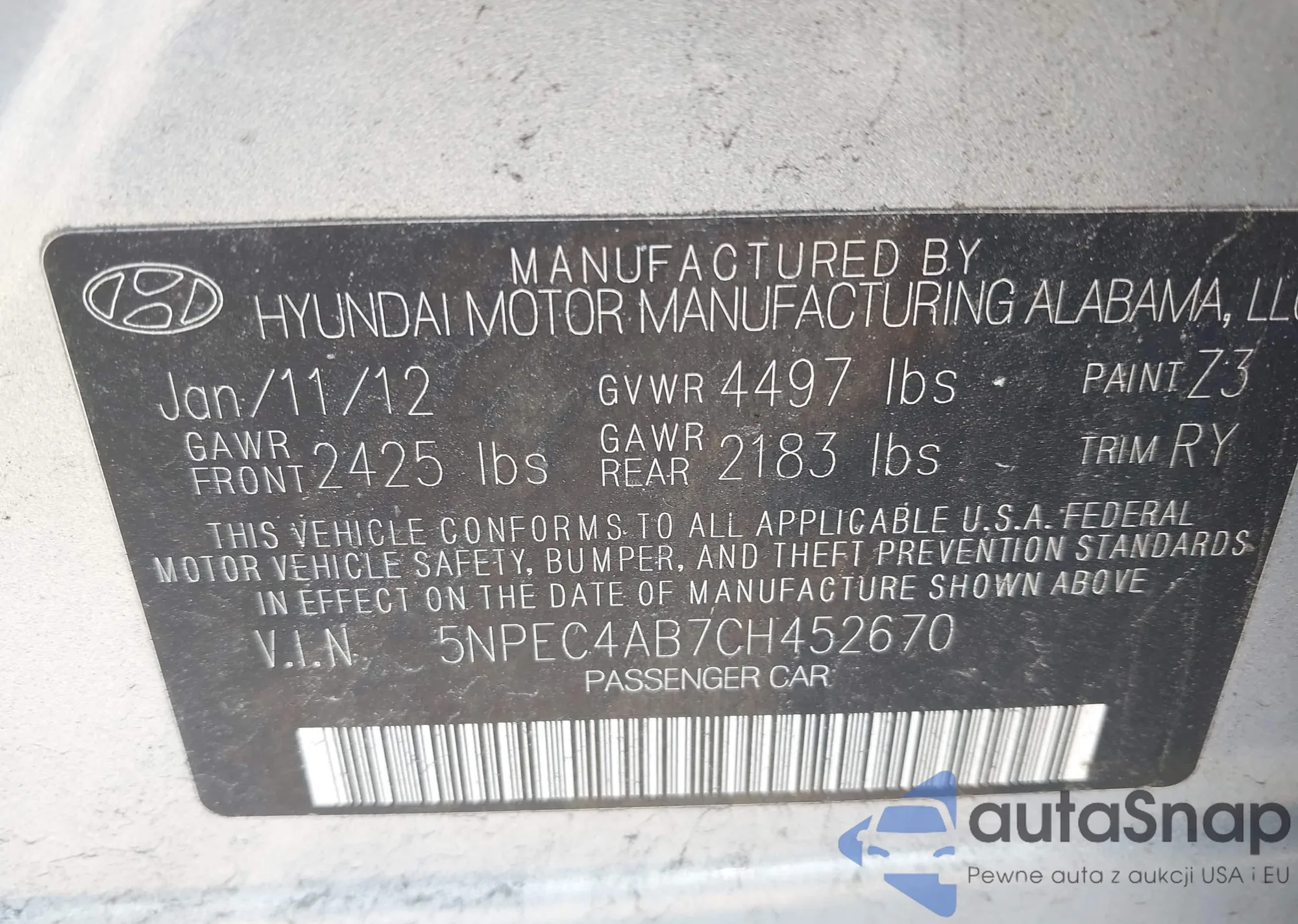 • VIN 5NPEC4AB7CH452670