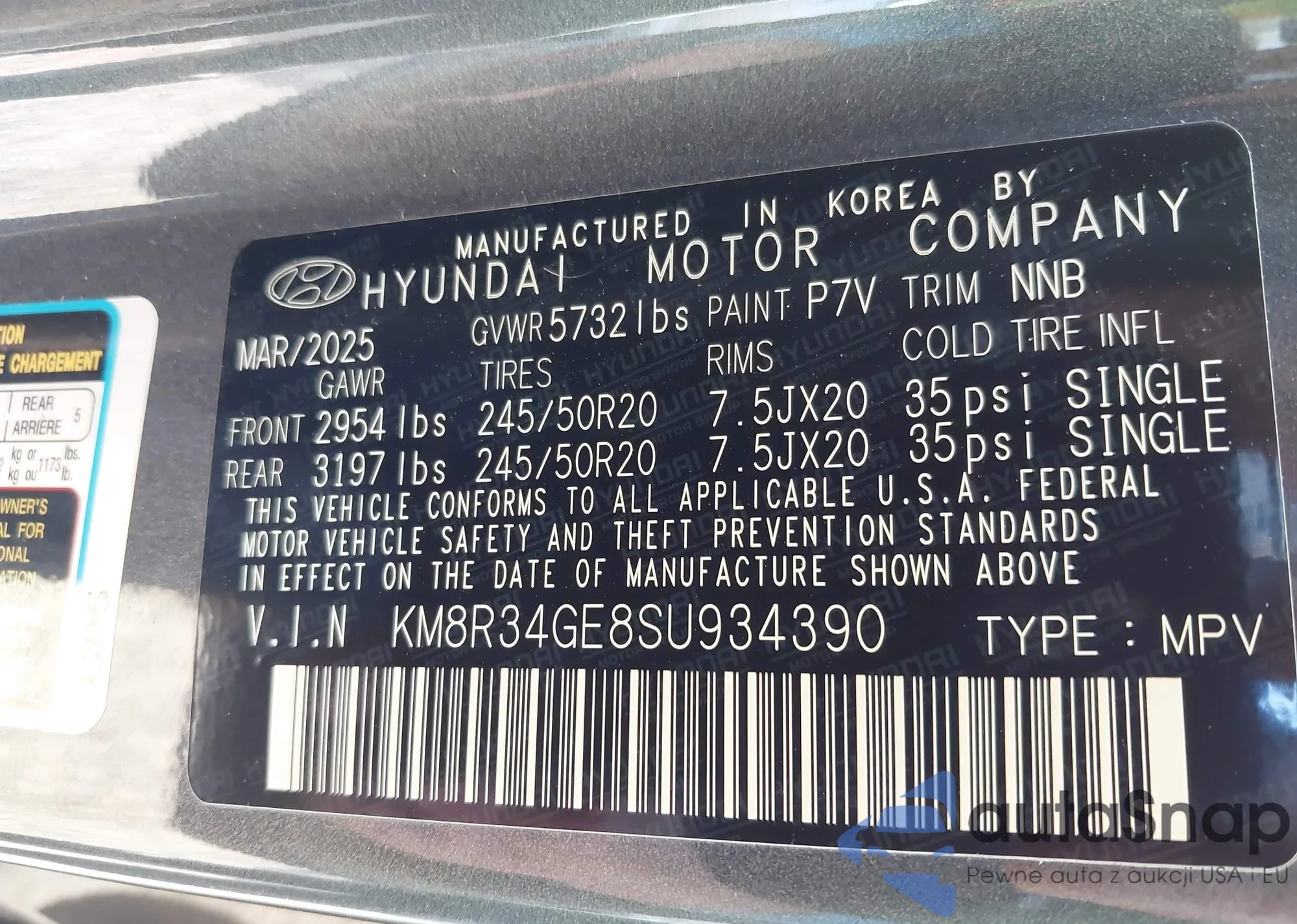 LOT: 43900166 VIN: KM8R34GE8SU934390