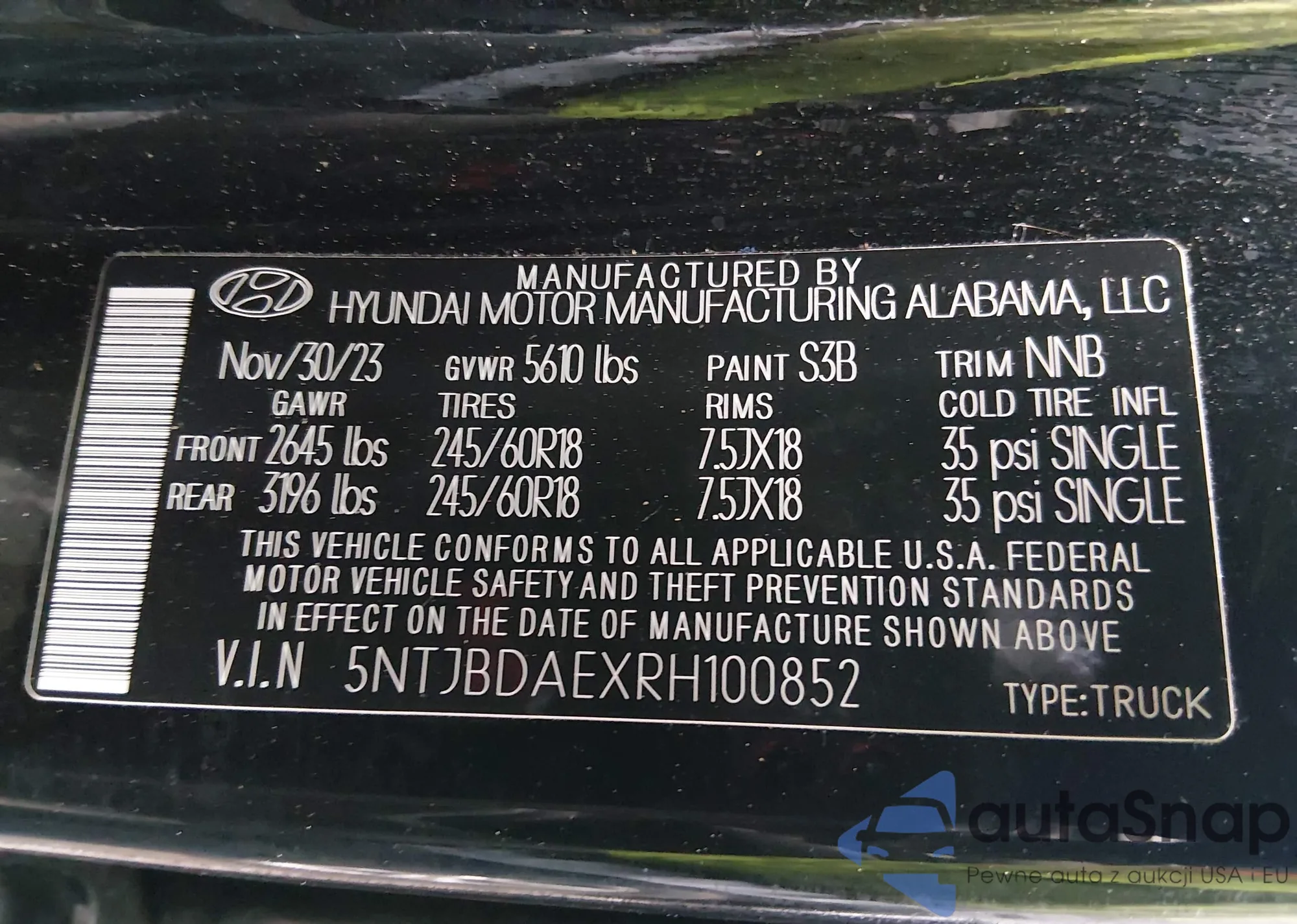 • VIN 5NTJBDAEXRH100852