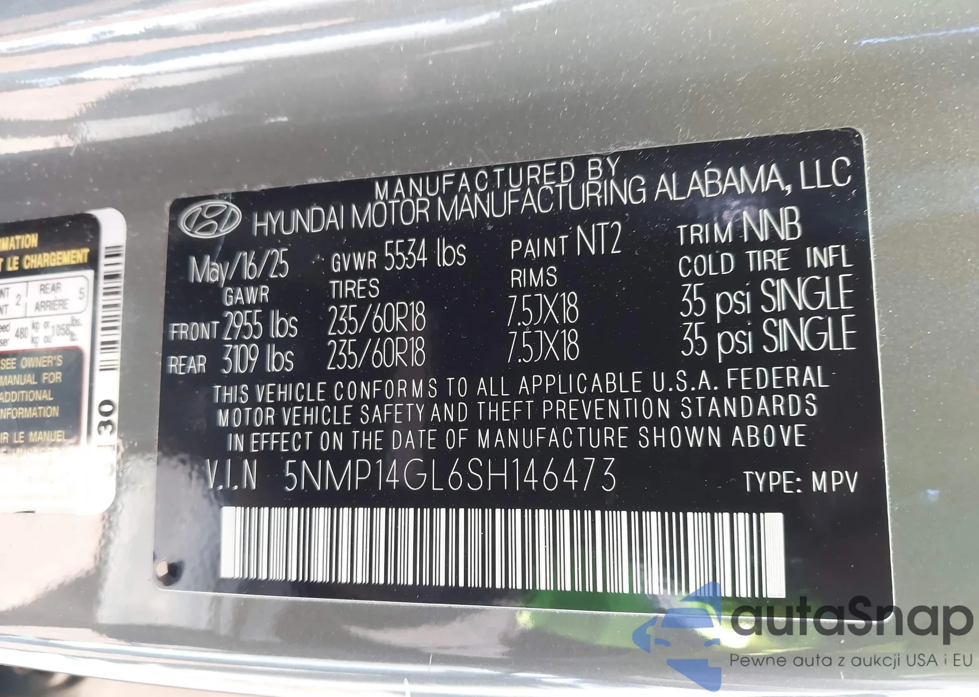 LOT: 44038185 VIN: 5NMP14GL6SH146473
