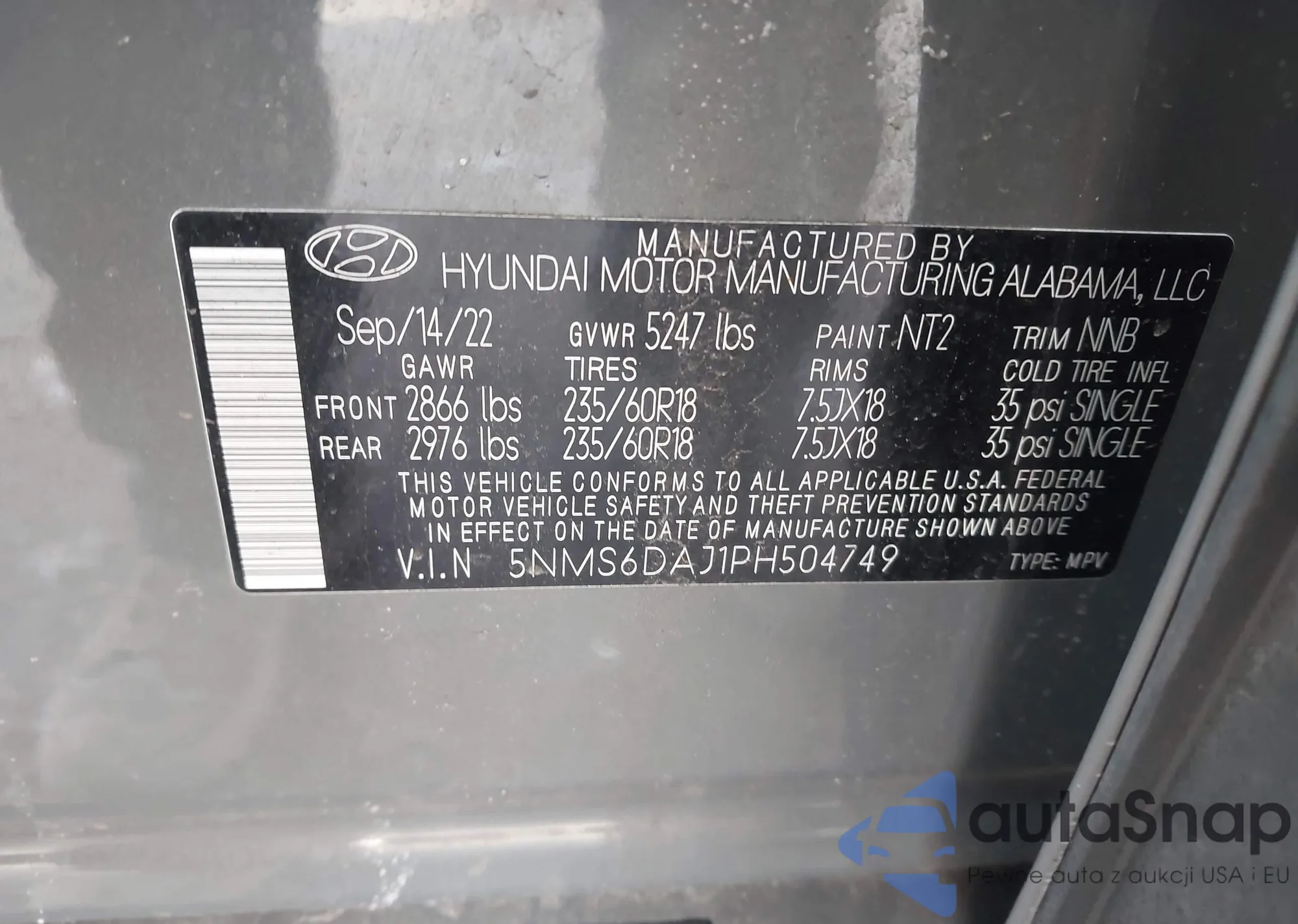 • VIN 5NMS6DAJ1PH504749