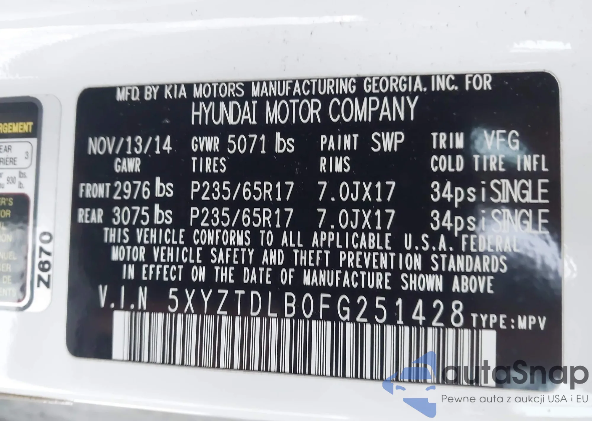• VIN 5XYZTDLB0FG251428